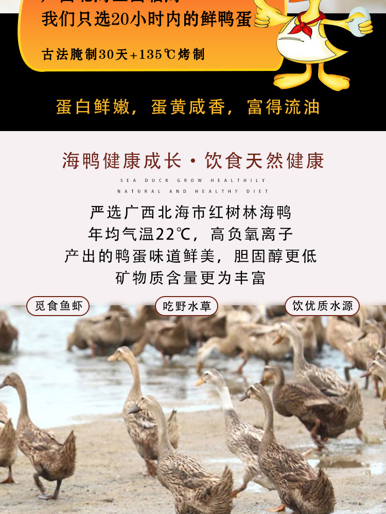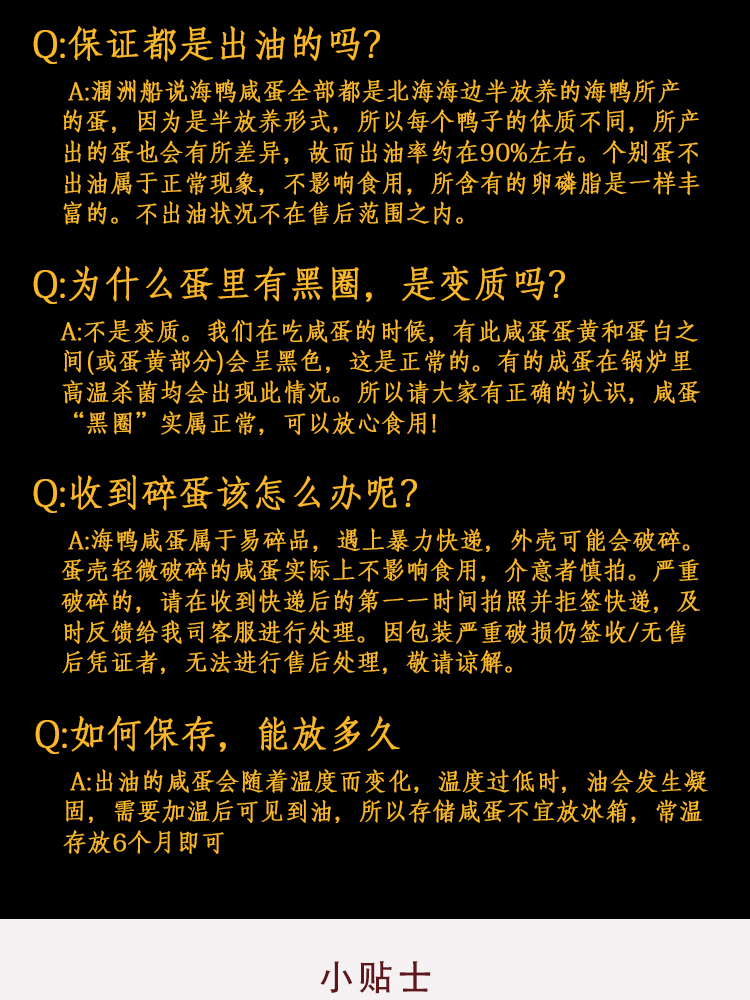 【规格】:海鸭蛋普通装(60g/枚);海鸭蛋礼盒装(70g/枚);双拼礼盒(海鸭蛋70g/枚,松花蛋65g/枚)
