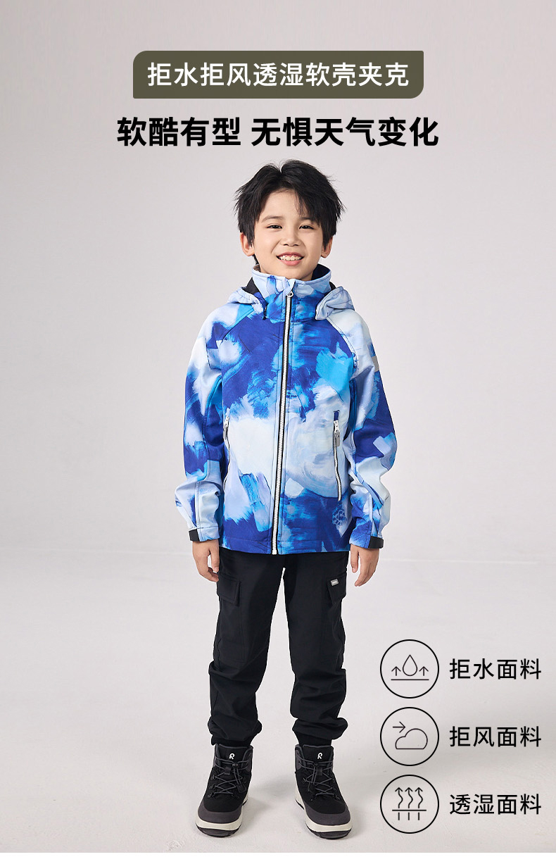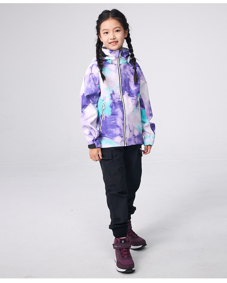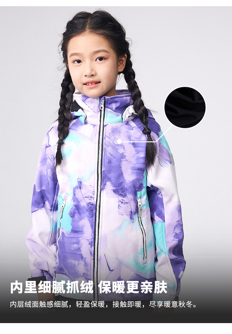 芬兰2024年秋冬新款男女儿童大童拒水防风透湿抓绒软壳夹克