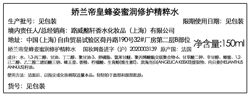 【中欧班列精选】法国娇兰帝皇蜂姿蜜润修护精粹水150ml Y BF