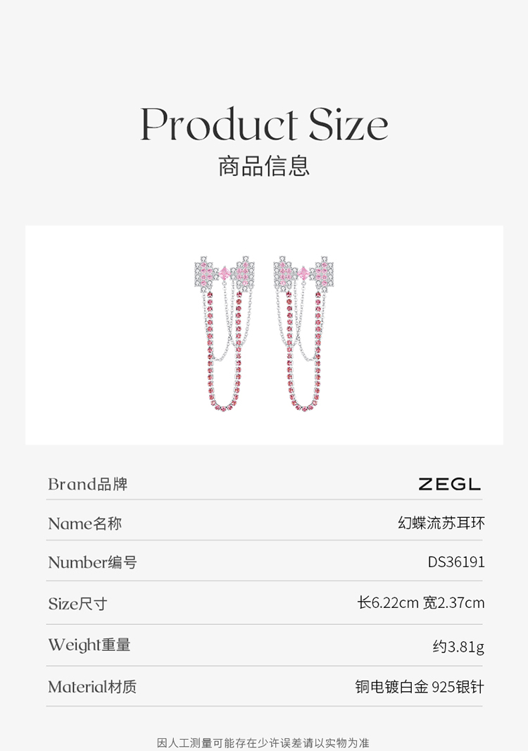 ZEGL设计师幻蝶心语系列流苏耳环女小众设计感高级耳钉银针耳饰品