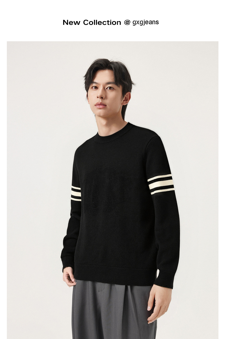 gxg.jeans男装冬季热卖黑色圆领线衫休闲舒适内搭长袖毛衫毛衣J24X204120