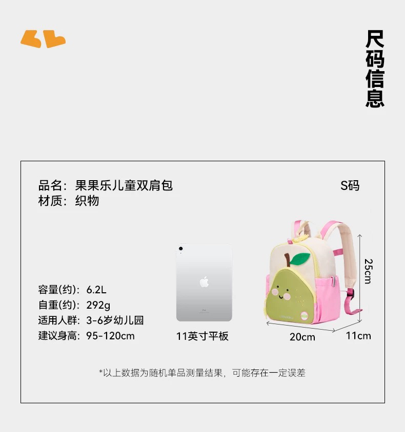 Shukiku趣走走 果果乐儿童双肩包 男女宝宝幼儿园户外轻便大容量双肩包