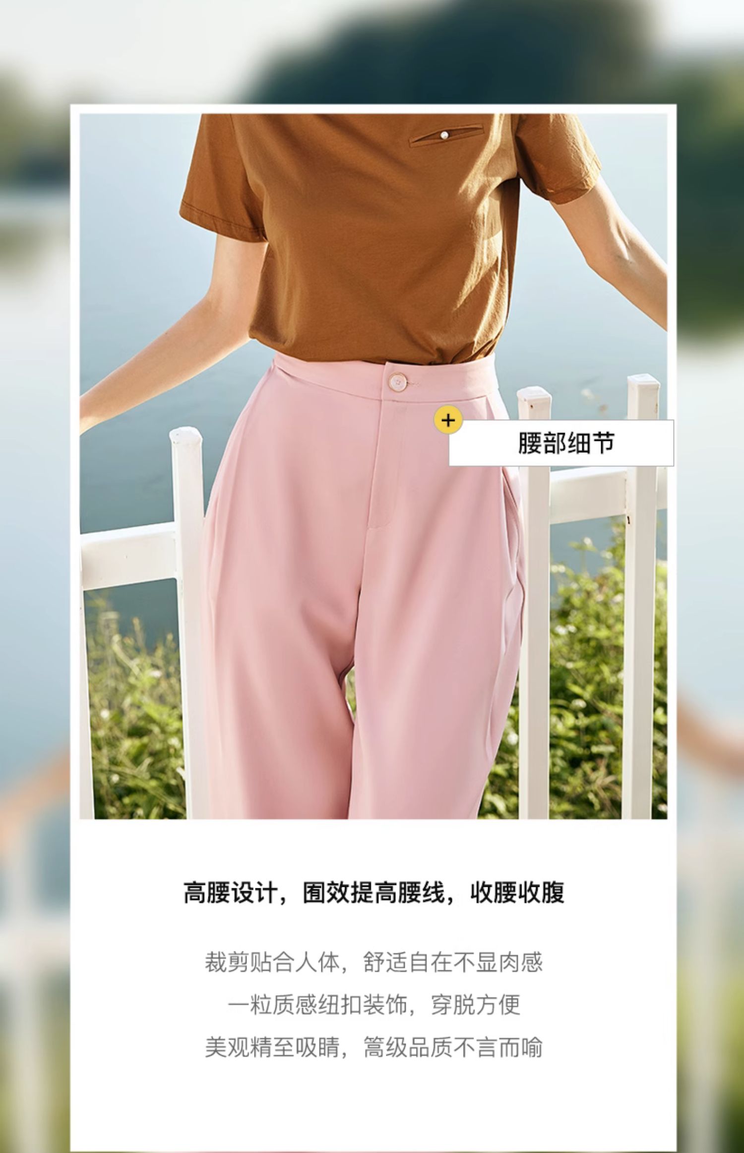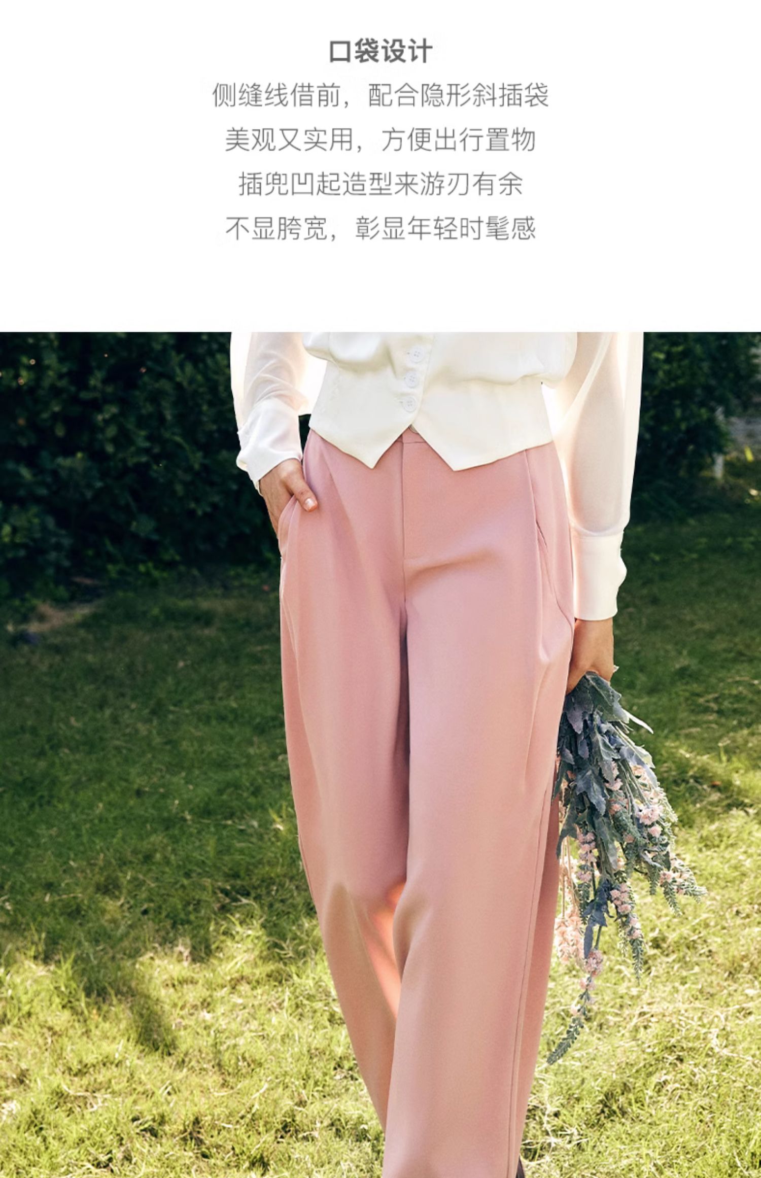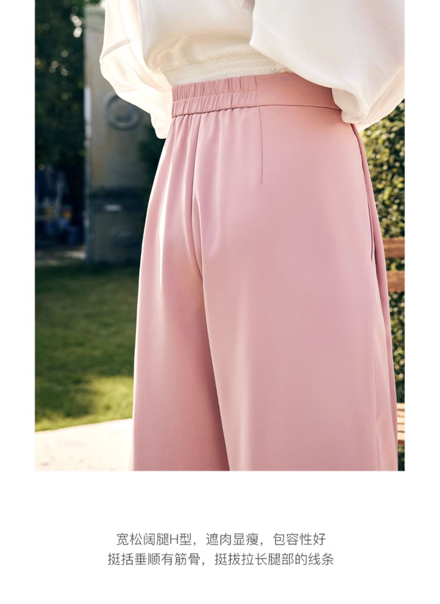 OLrain欧芮儿法式粉色休闲裤女秋季2023年新款高腰垂感直筒阔腿裤