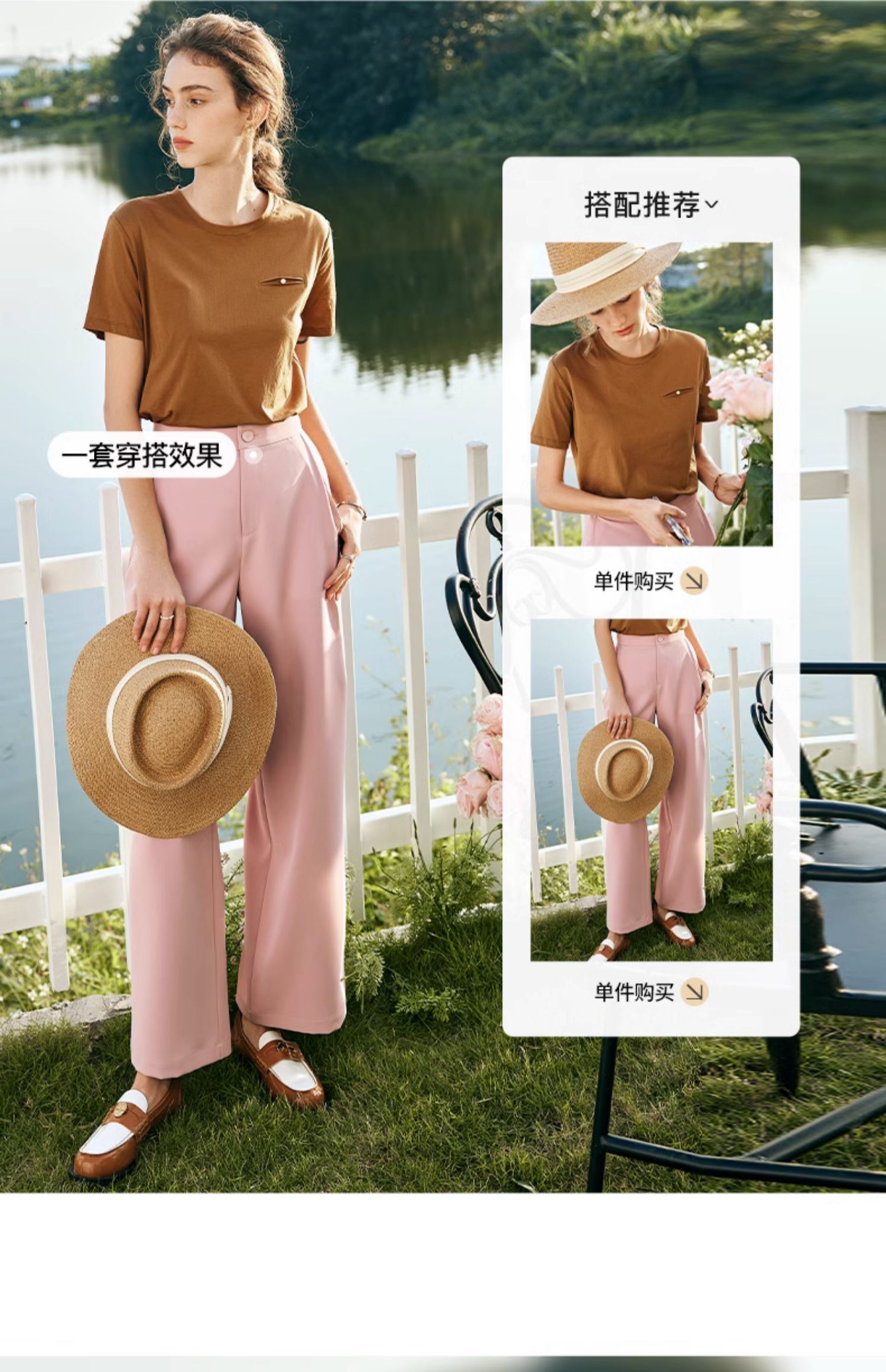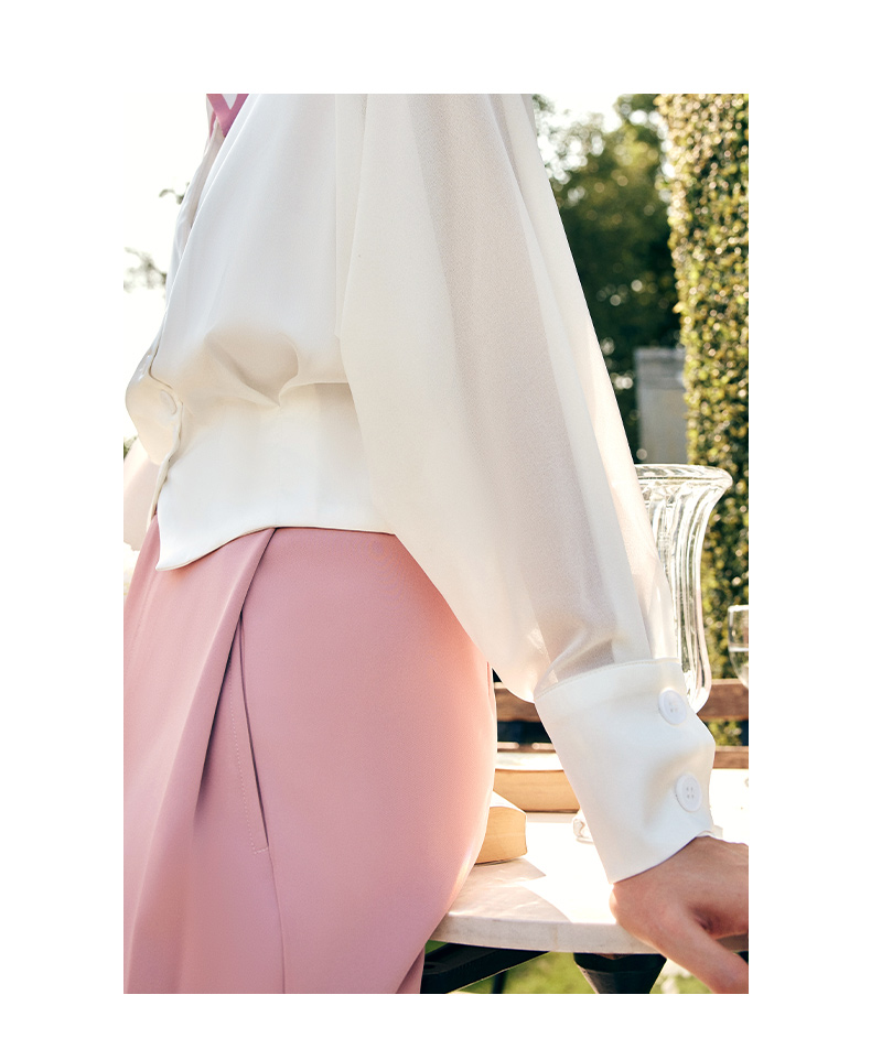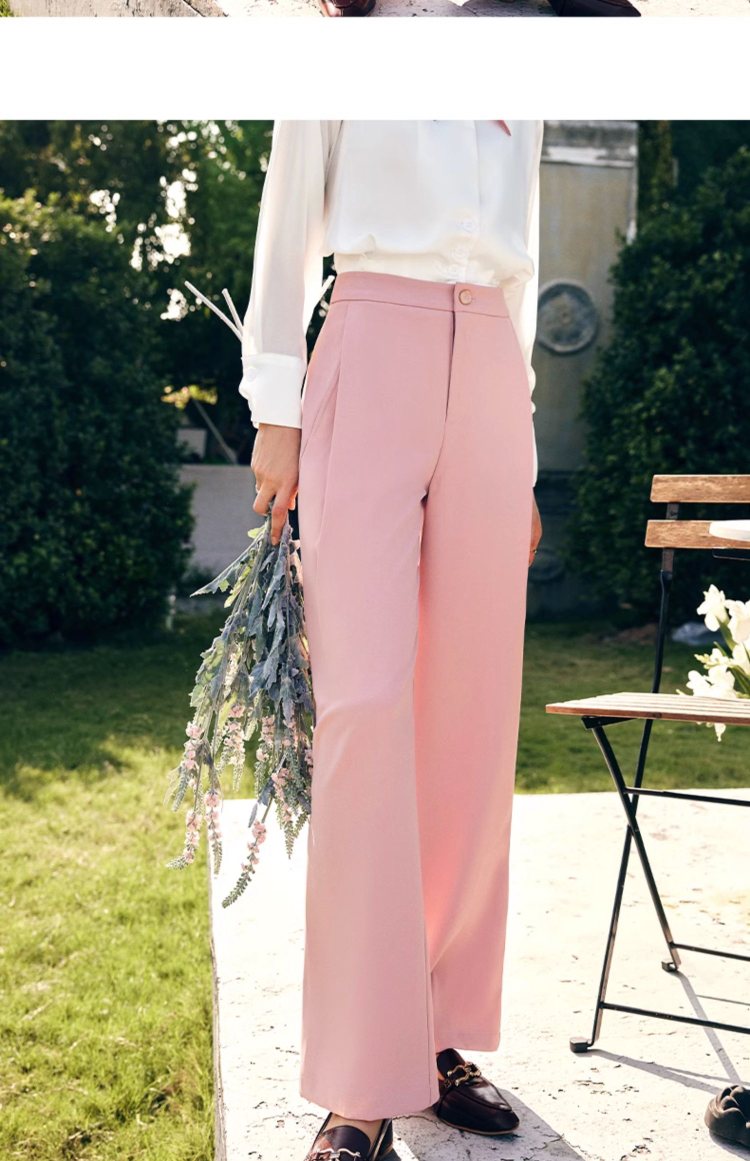 OLrain欧芮儿法式粉色休闲裤女秋季2023年新款高腰垂感直筒阔腿裤