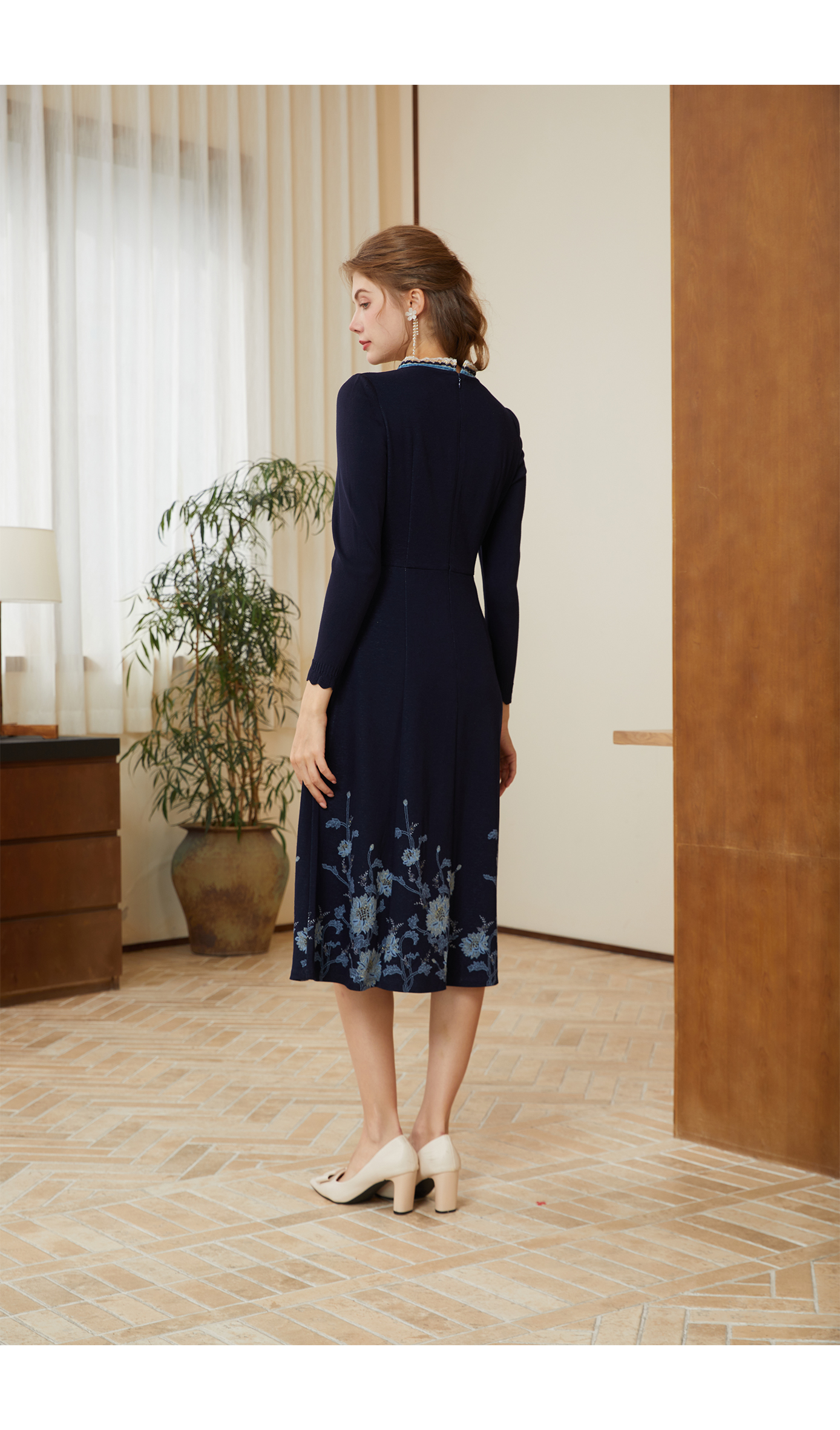 司歌毛织长袖冬弹力针织花连衣裙收腰显瘦A881064