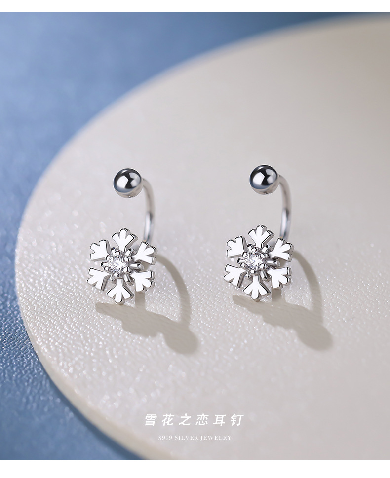 【二月雪】s999纯银锆石雪花拧螺丝耳饰【YXS-E5259】