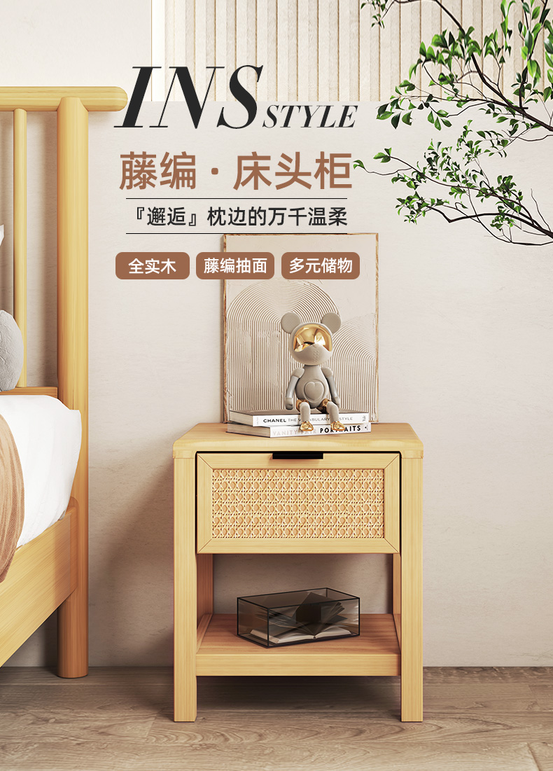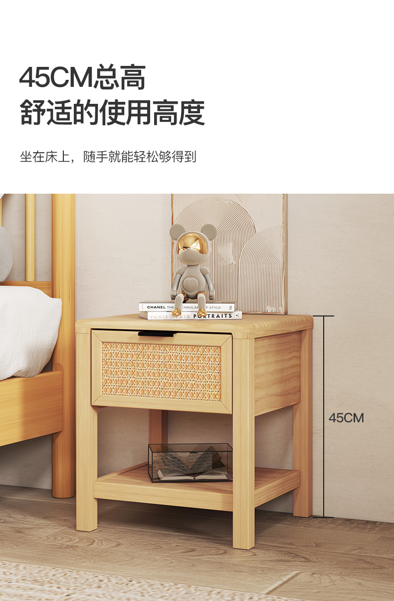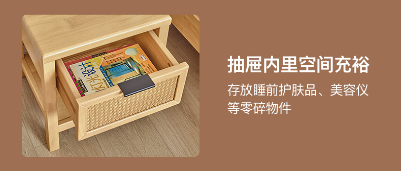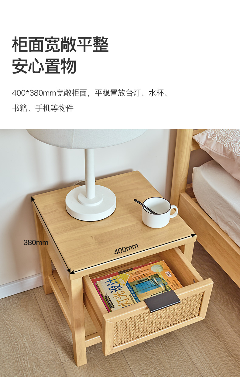 喜梦宝床头柜现代简约橡胶木床边小柜子北欧卧室简易储物柜 温莎系列