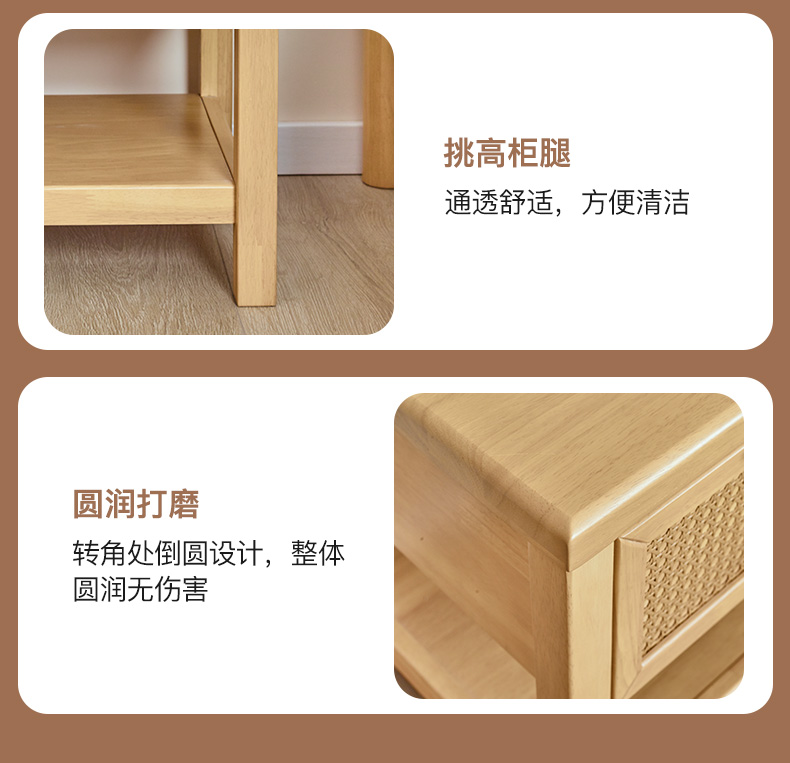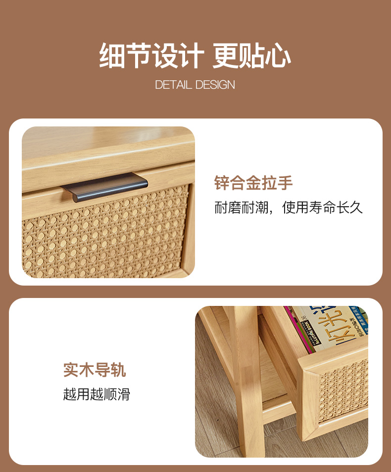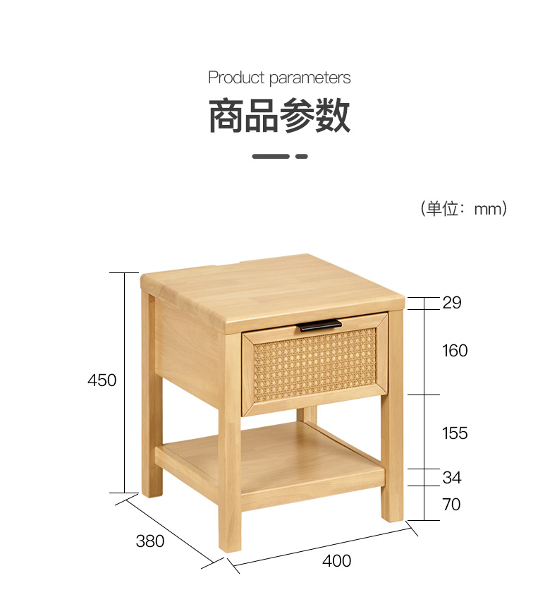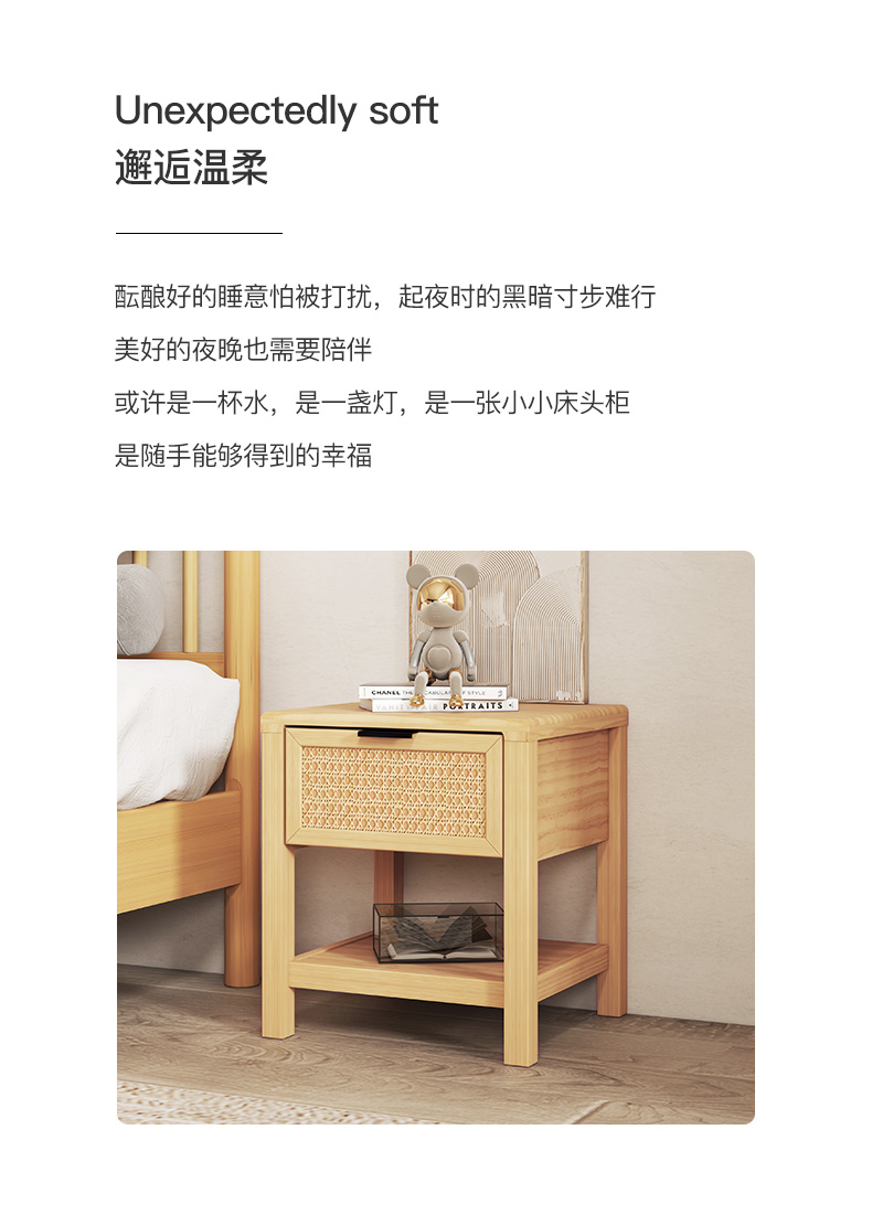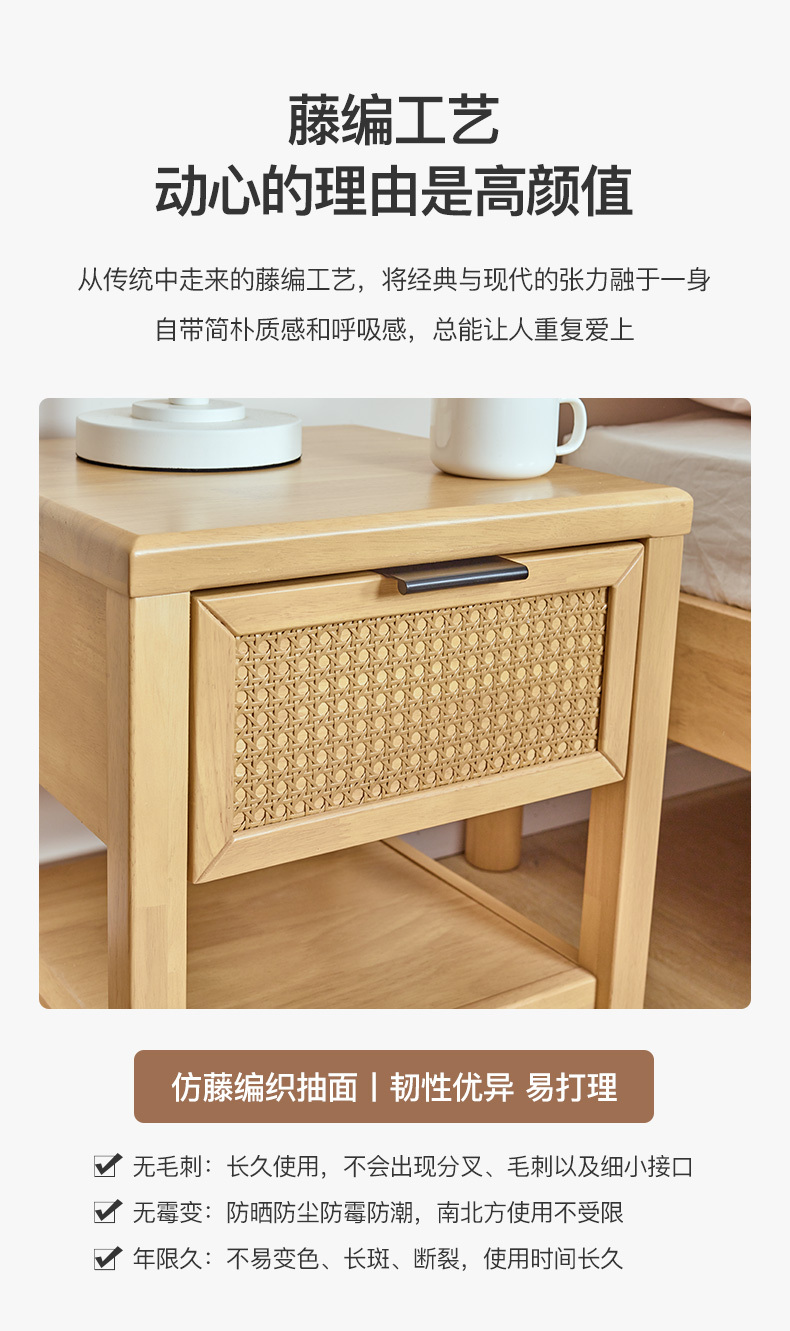 喜梦宝床头柜现代简约橡胶木床边小柜子北欧卧室简易储物柜 温莎系列