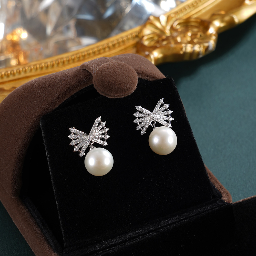 子佩集【蝶翼轻缚】银S925珍珠惜王妃耳钉【MLEH030】8.5mm珠蝴蝶结2601