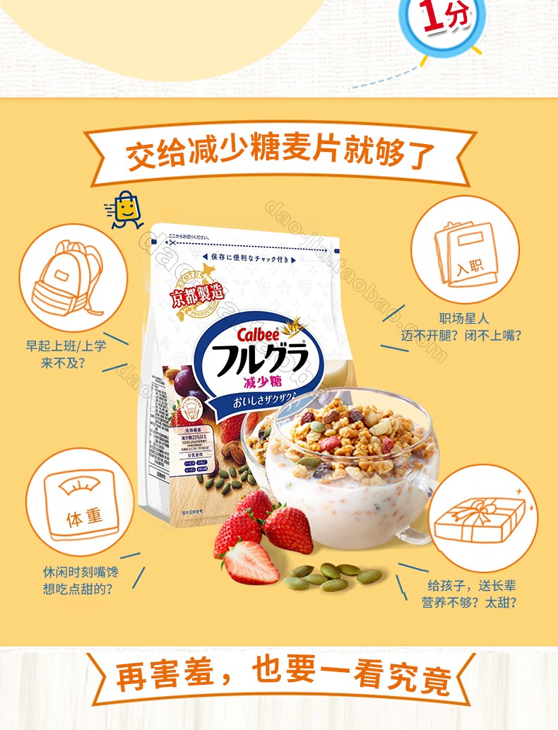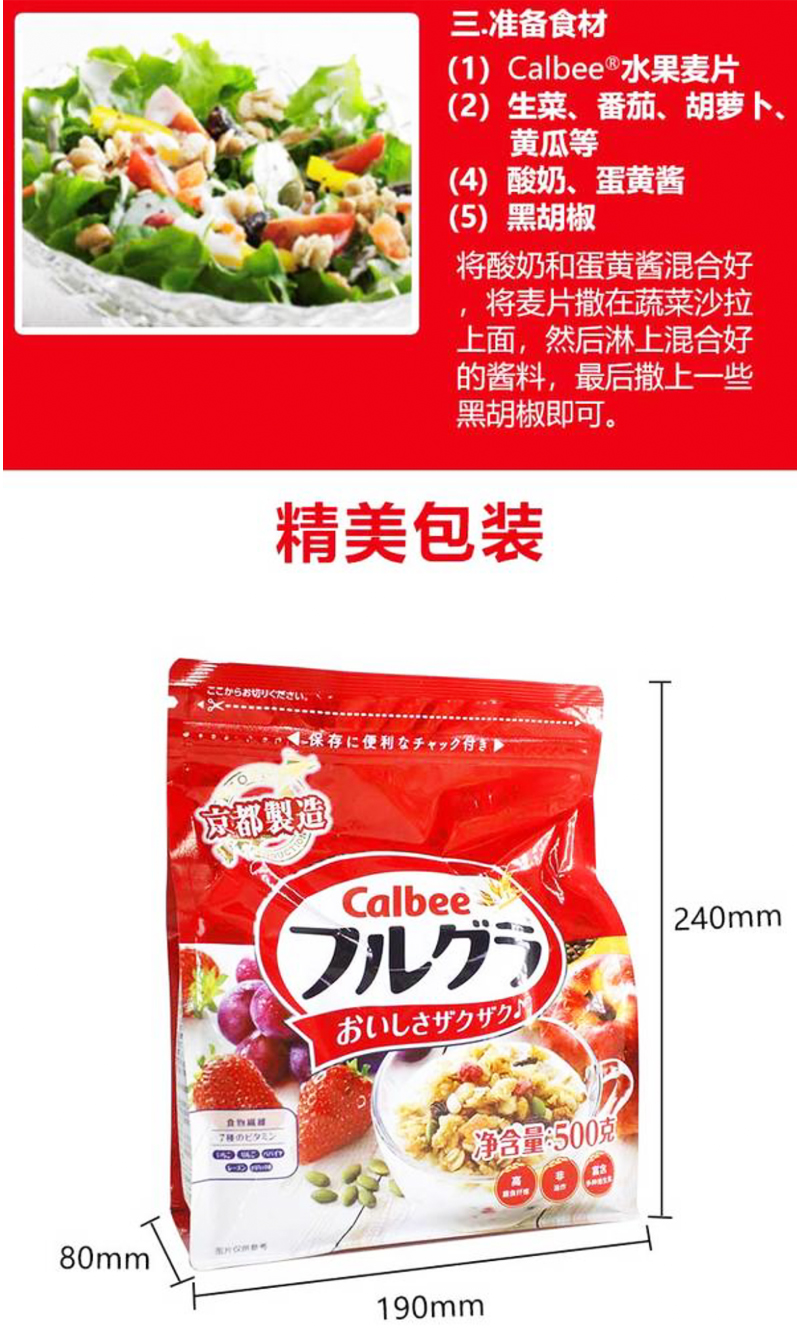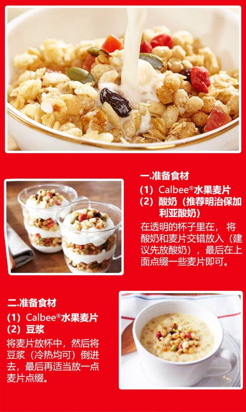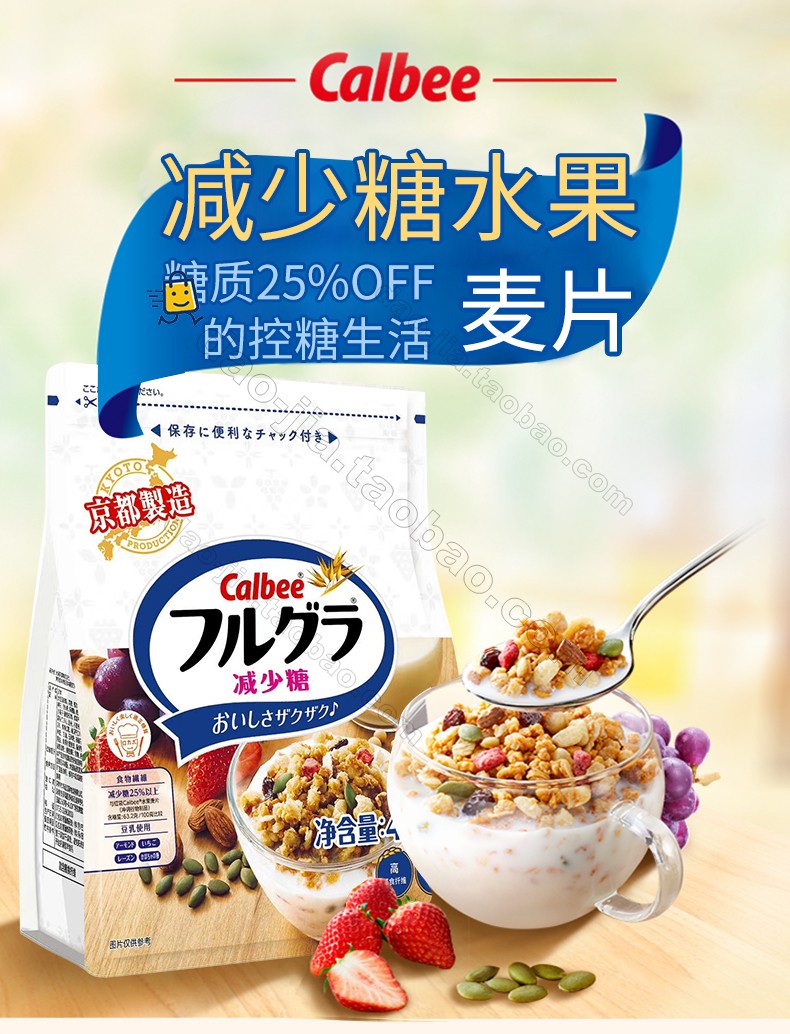 Calbee卡乐比水果麦片500g*2袋 / 减少糖麦片500g*2袋