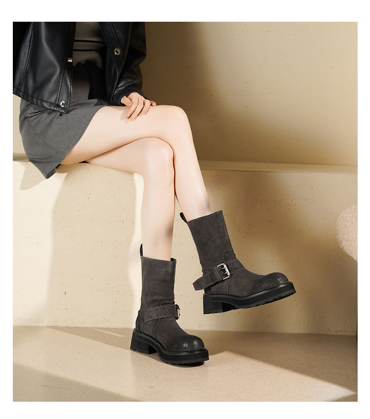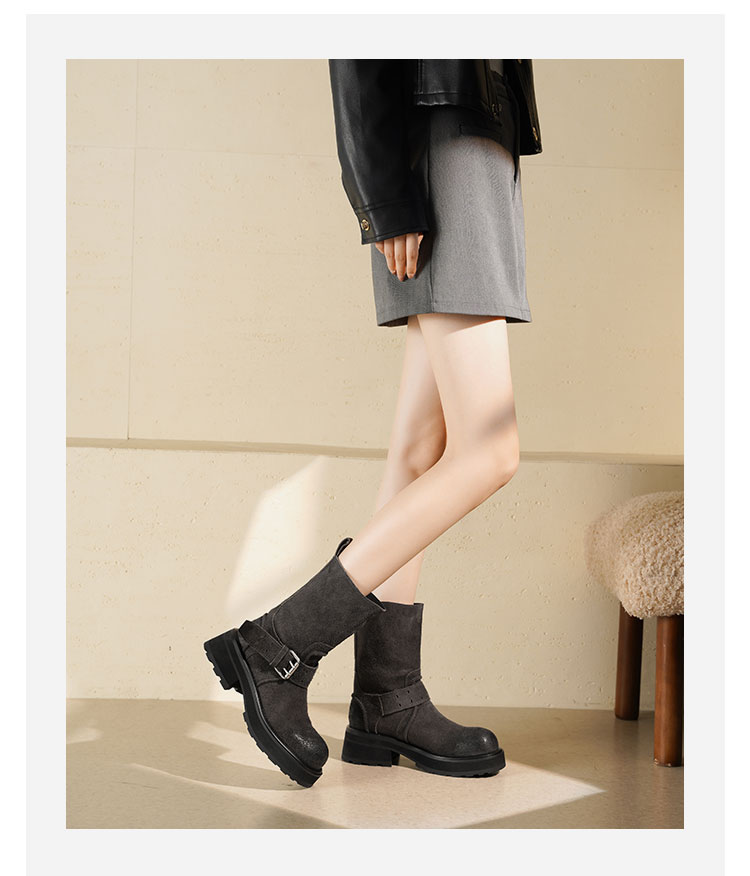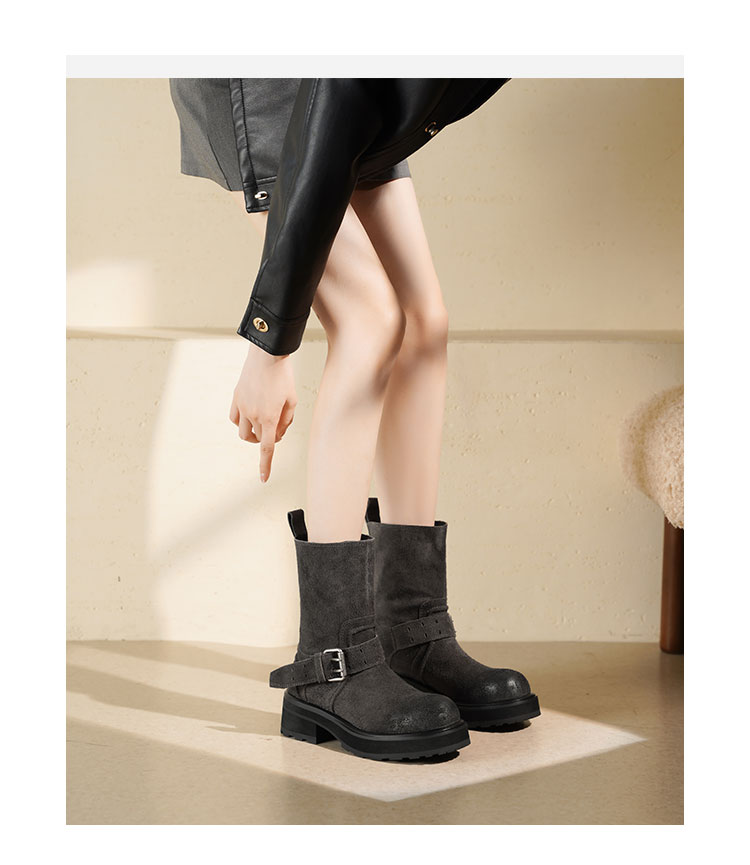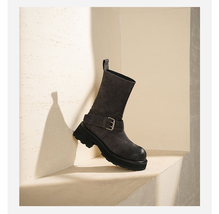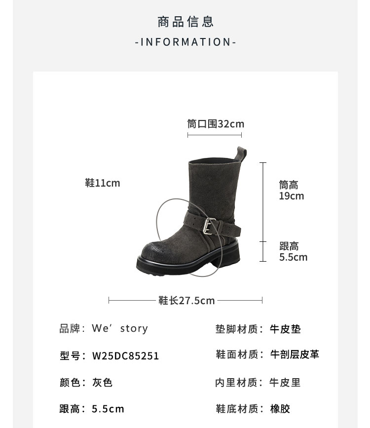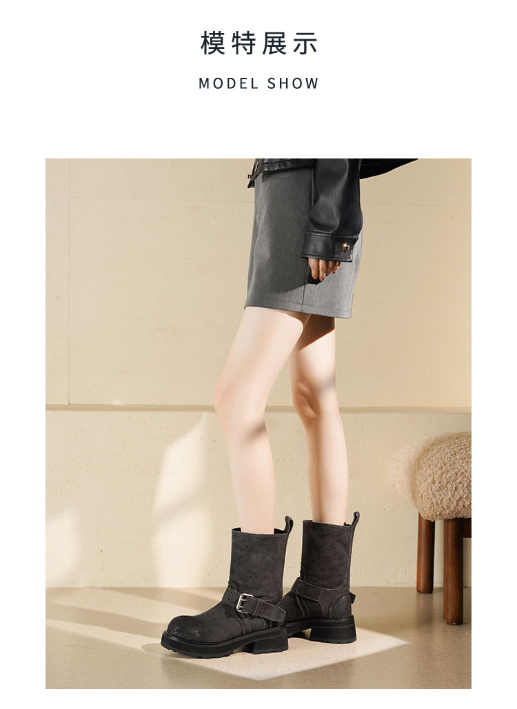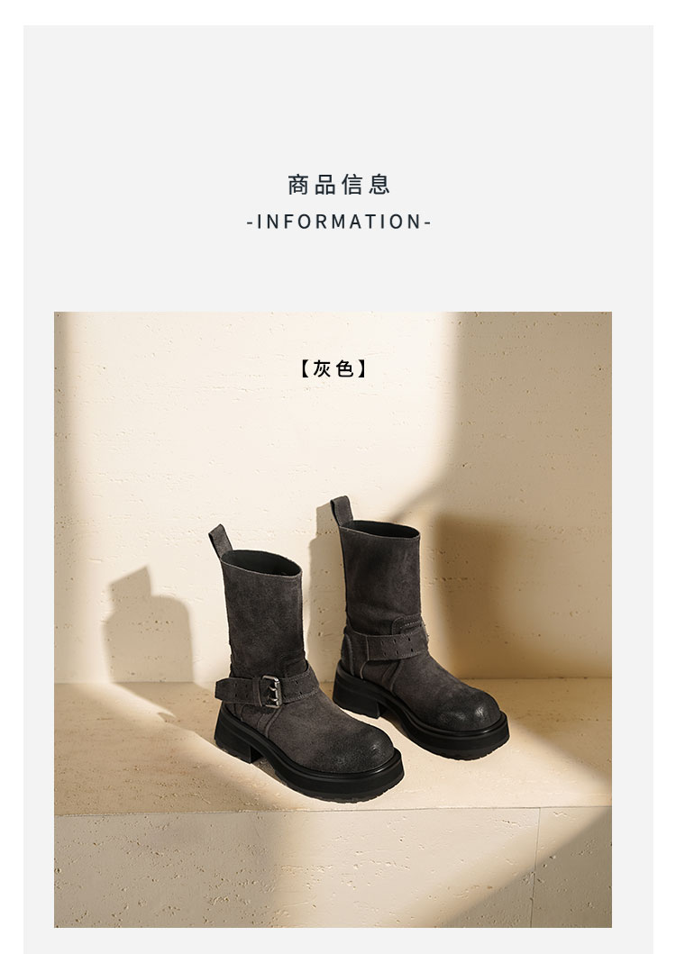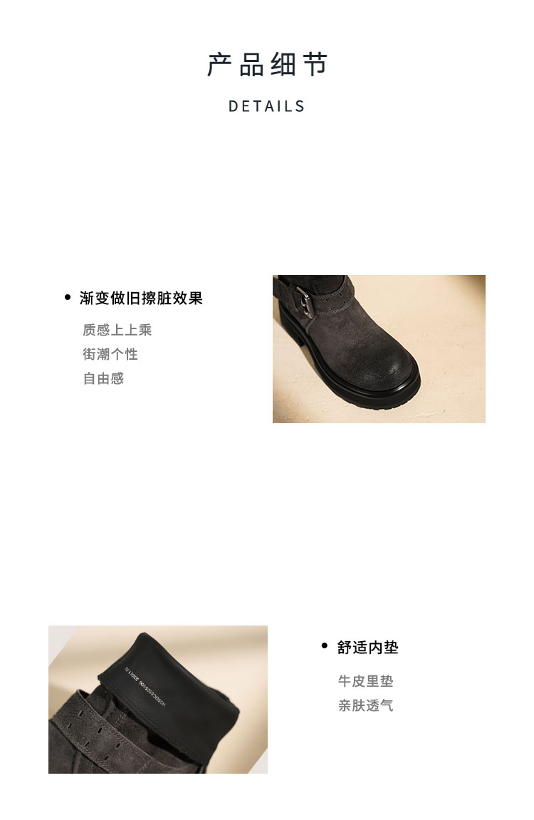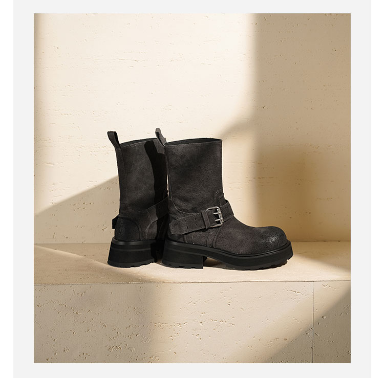 Westory2025年冬季直筒渐变做旧擦脏复古休闲厚底潮酷短靴W25DC85251
