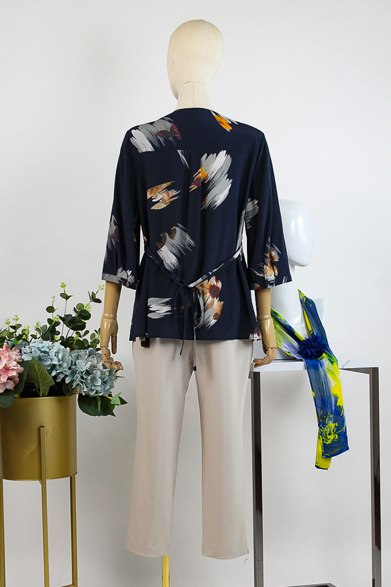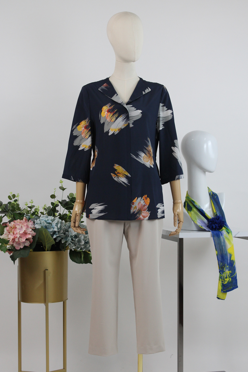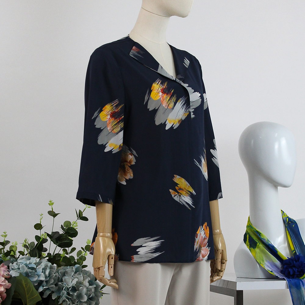 FOCALS福柯斯女装夏季新款桑蚕丝翻领系带印花衬衫RGBN358BV