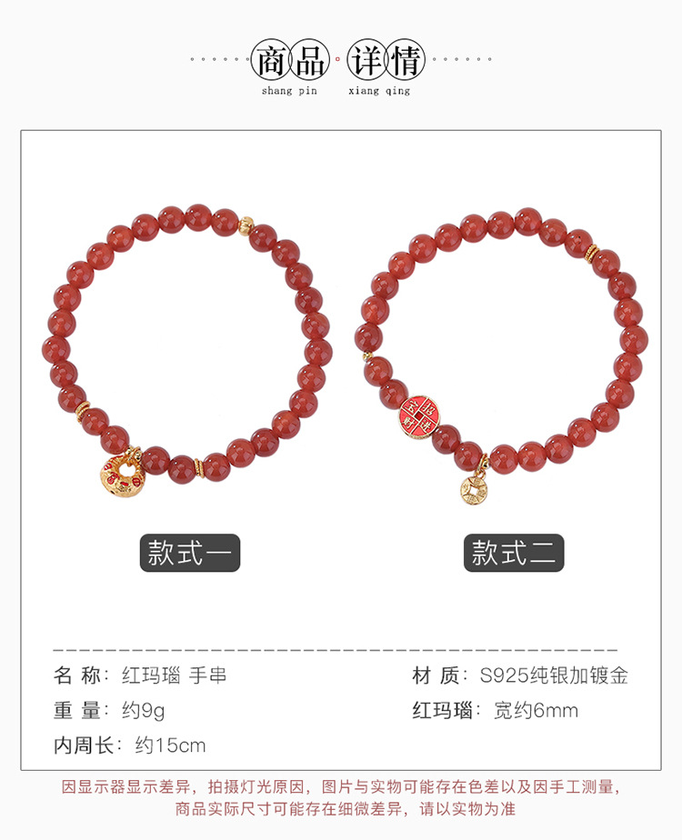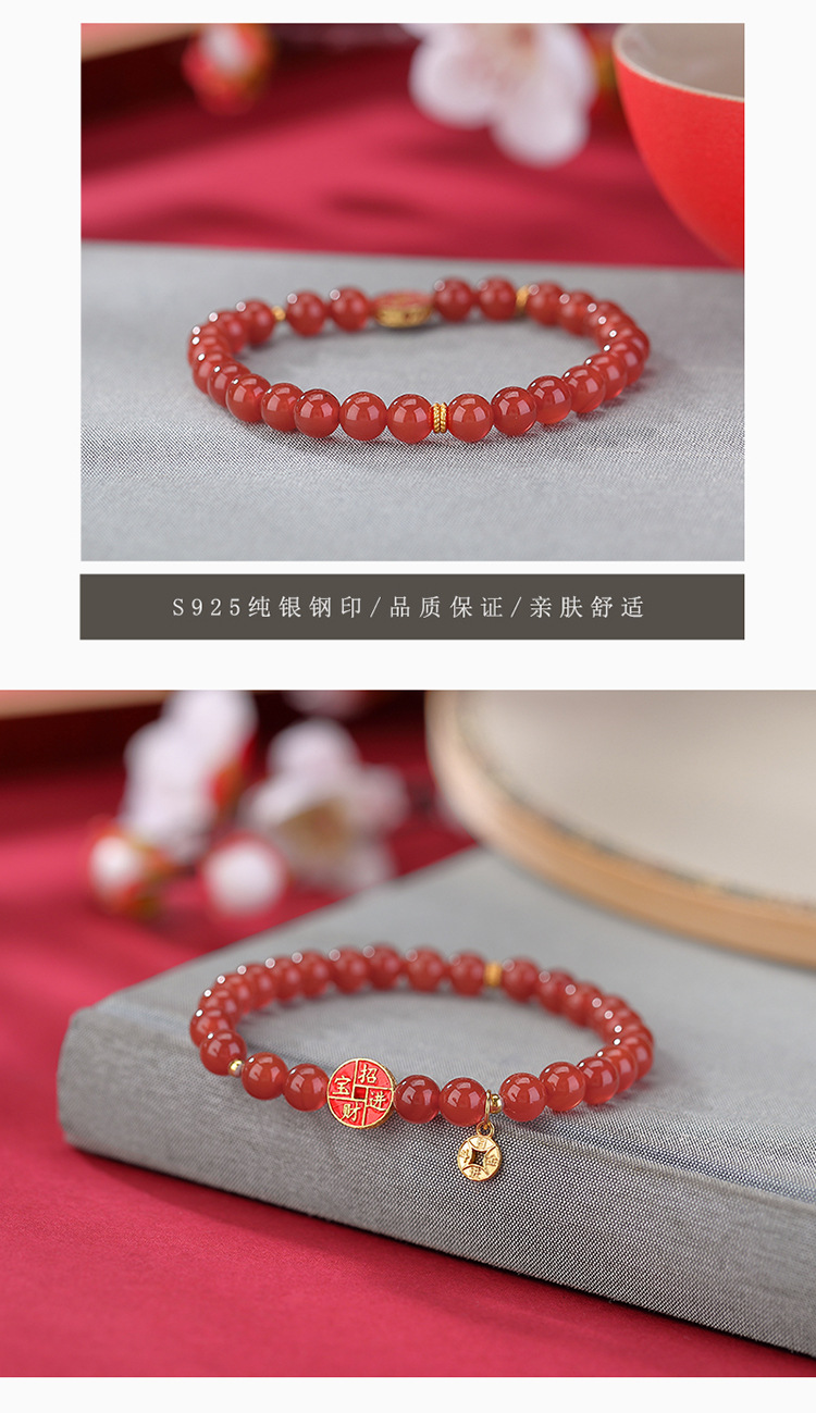 【日富一日】S925银镀金红玛瑙招财福袋万事胜意手链【CW-SL11752-11】