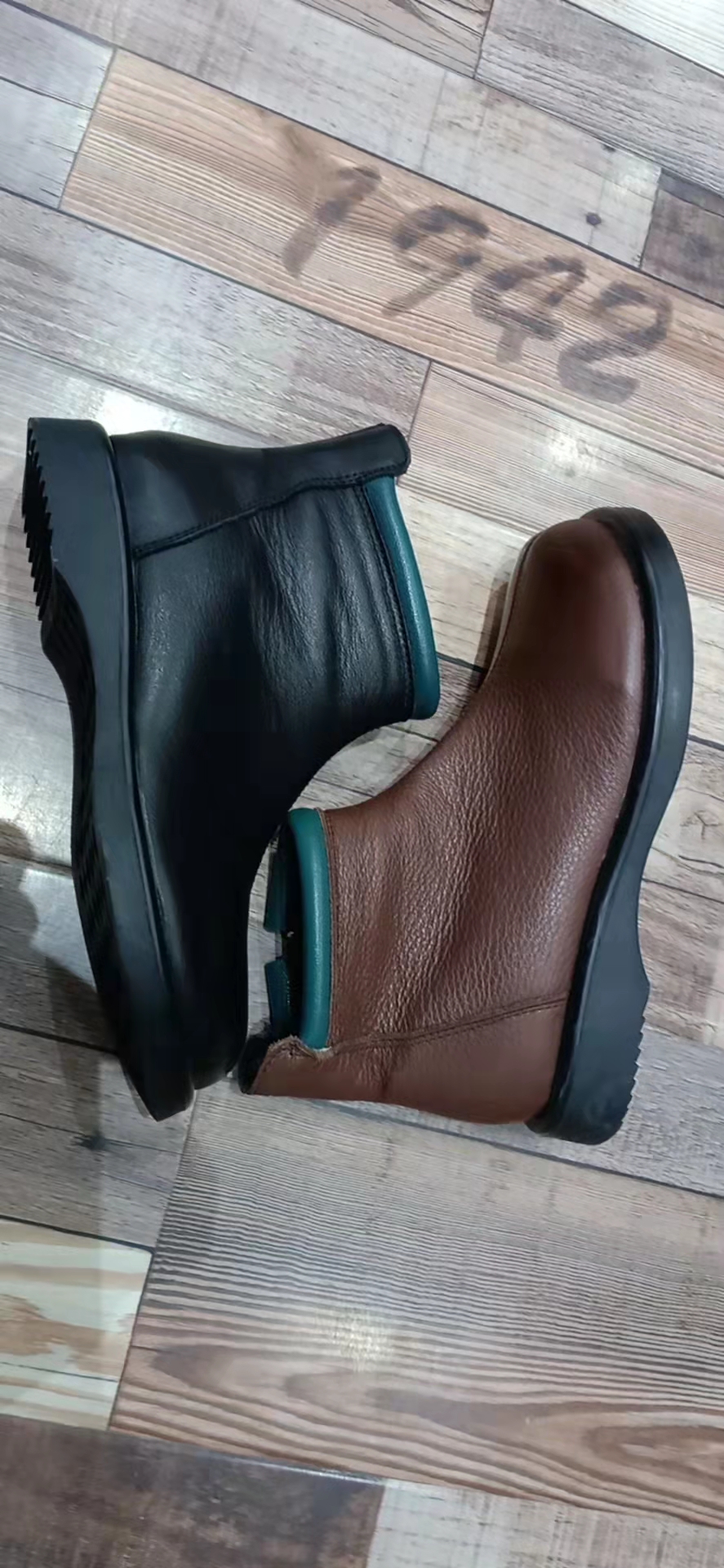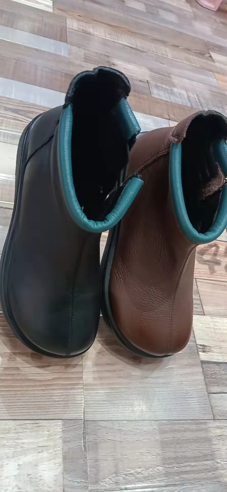 卖点,材质牛皮,穿着透气性特好,橡胶大底,防滑耐磨,采用280克绒,穿着保暖性好,搭配牛仔,小脚裤,打底裤的首选。