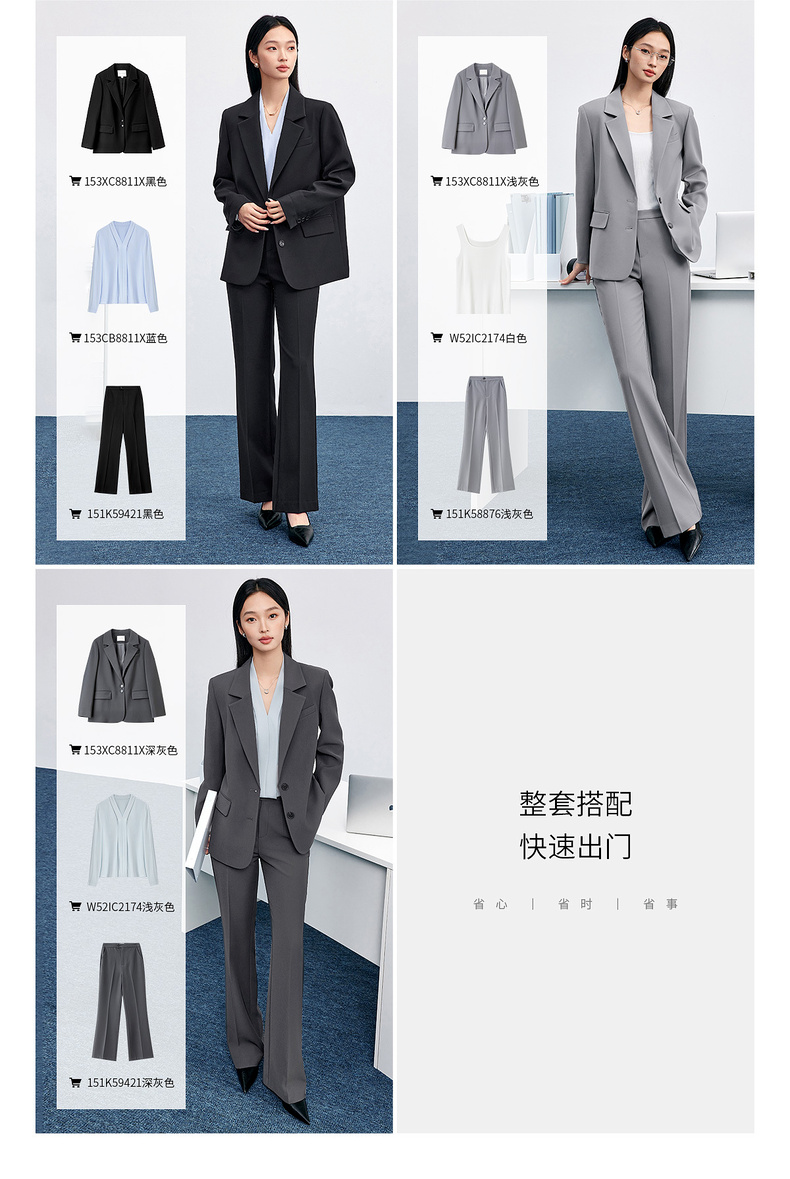 【内购】尚都比拉面试西装外套女职业正装通勤职场穿搭西装微喇长裤套装-153ZE8814Z