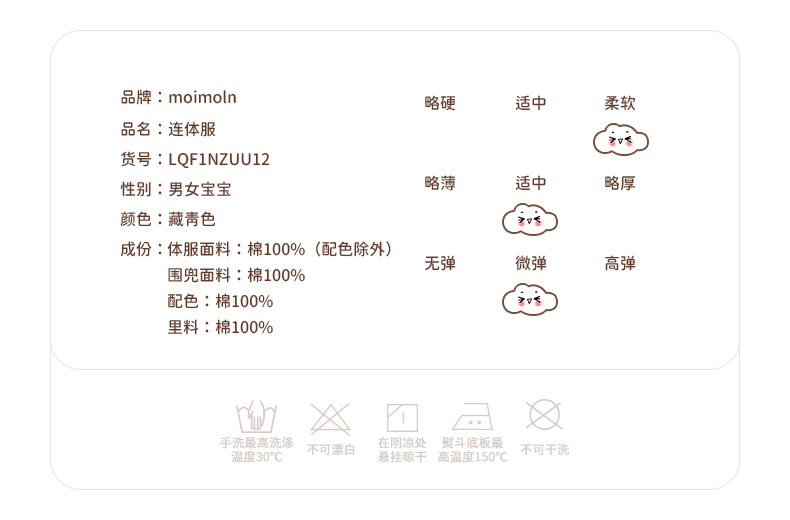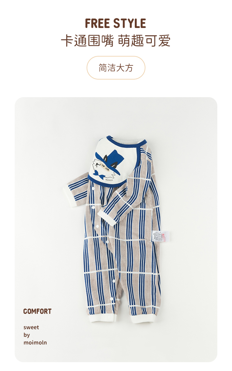 【尺码偏小请拍大一码】moimoln小云朵童装2021秋装新品男女宝纯棉连体衣新生儿舒适爬服LQF1NZUU12