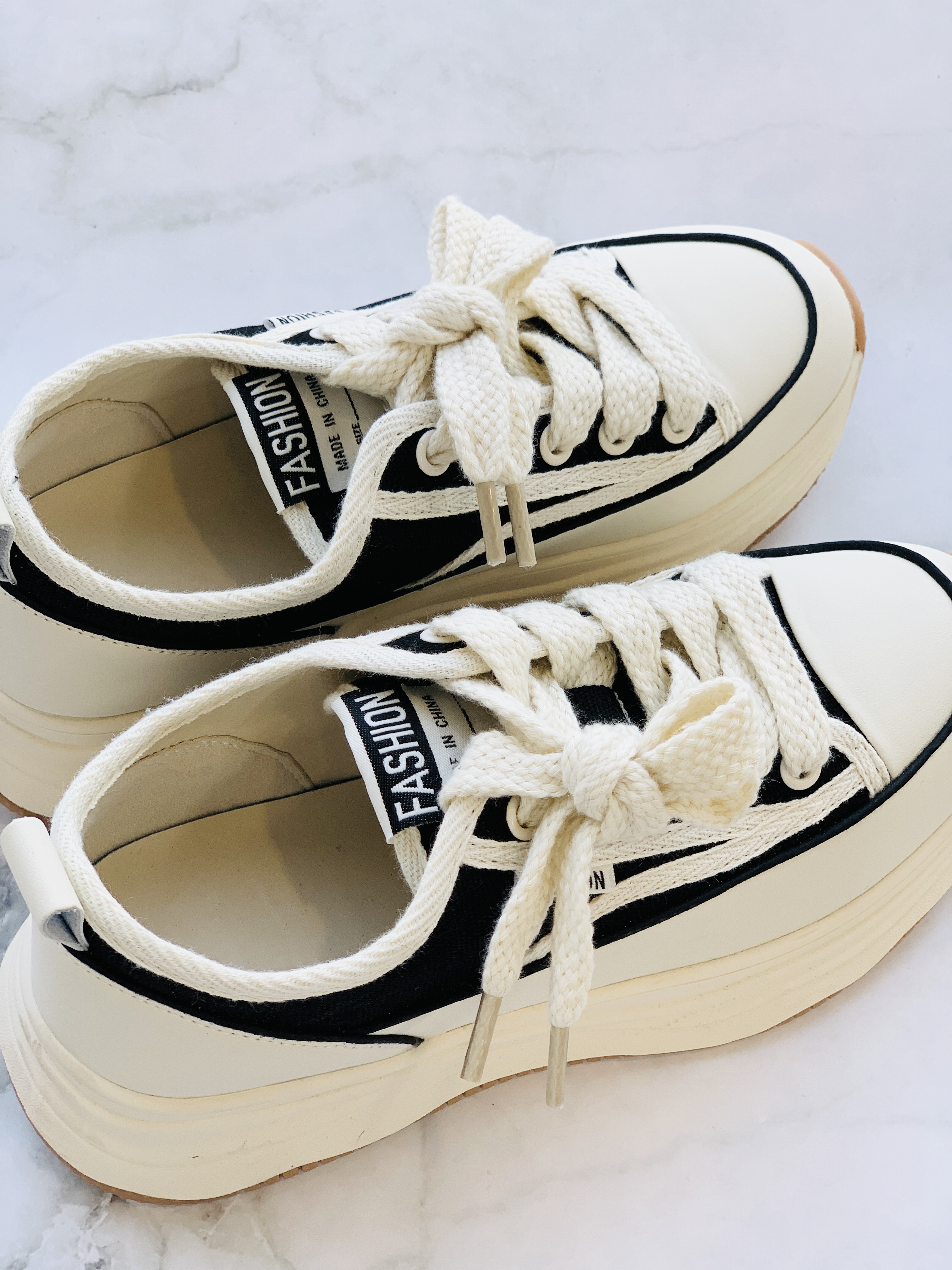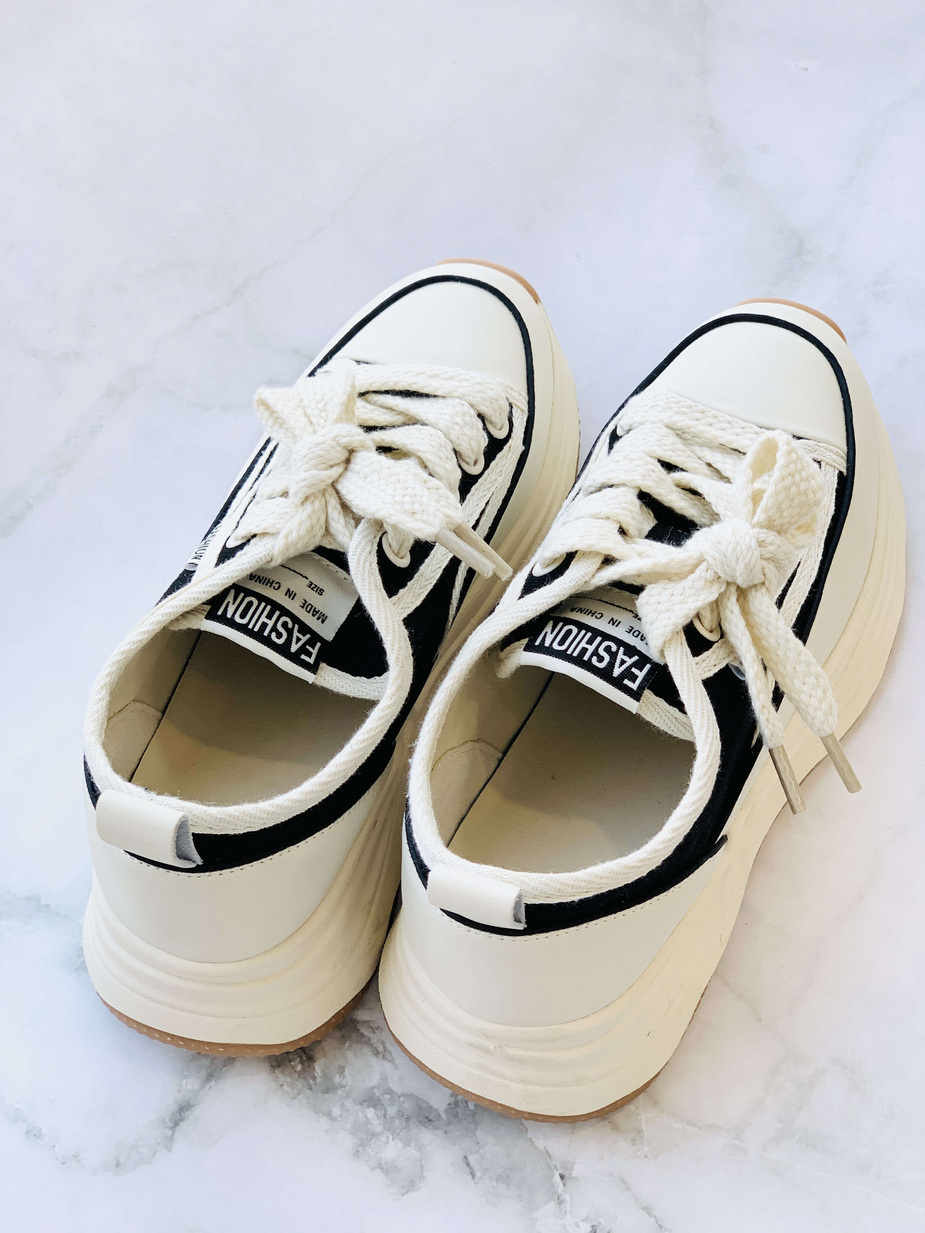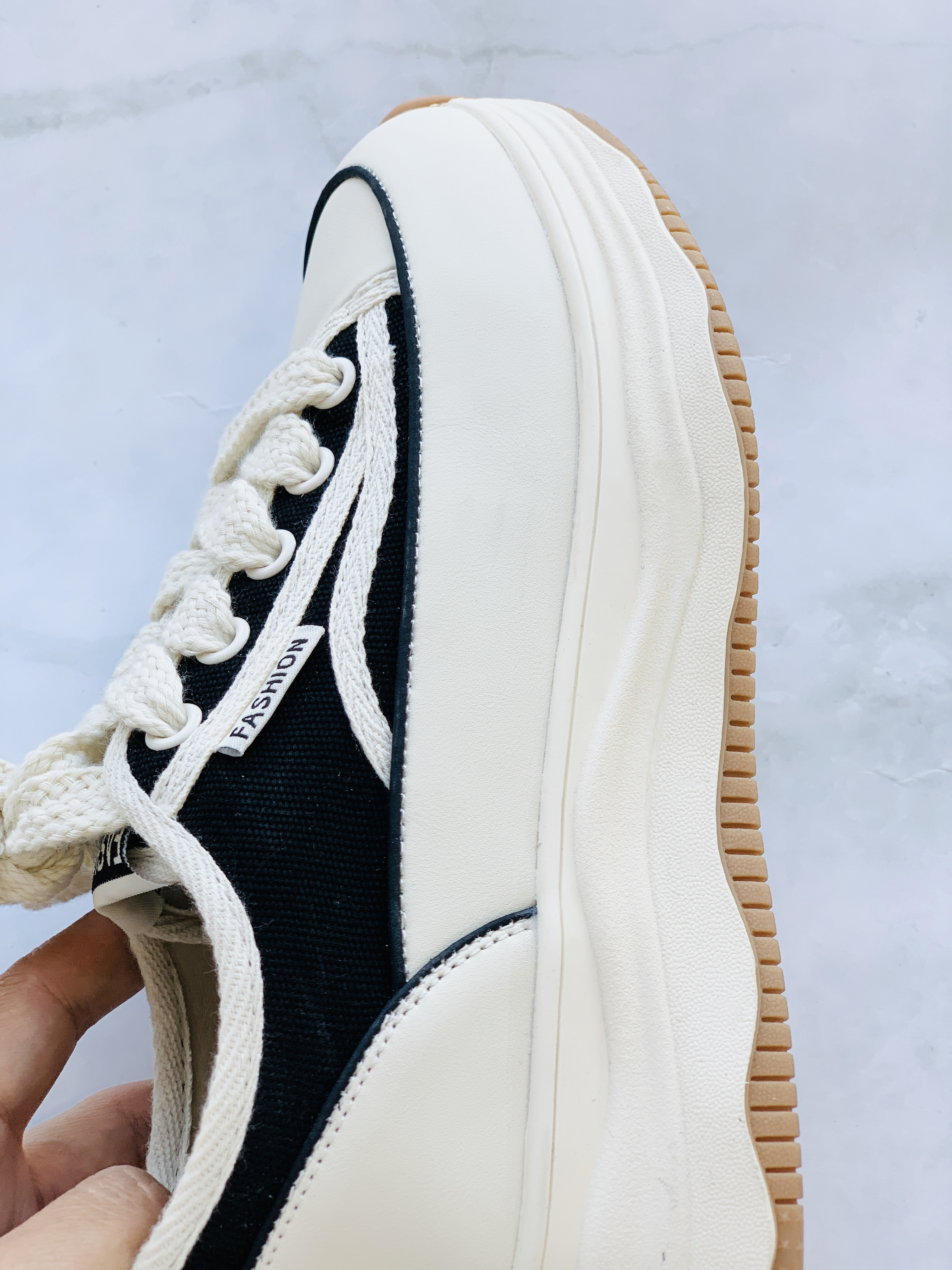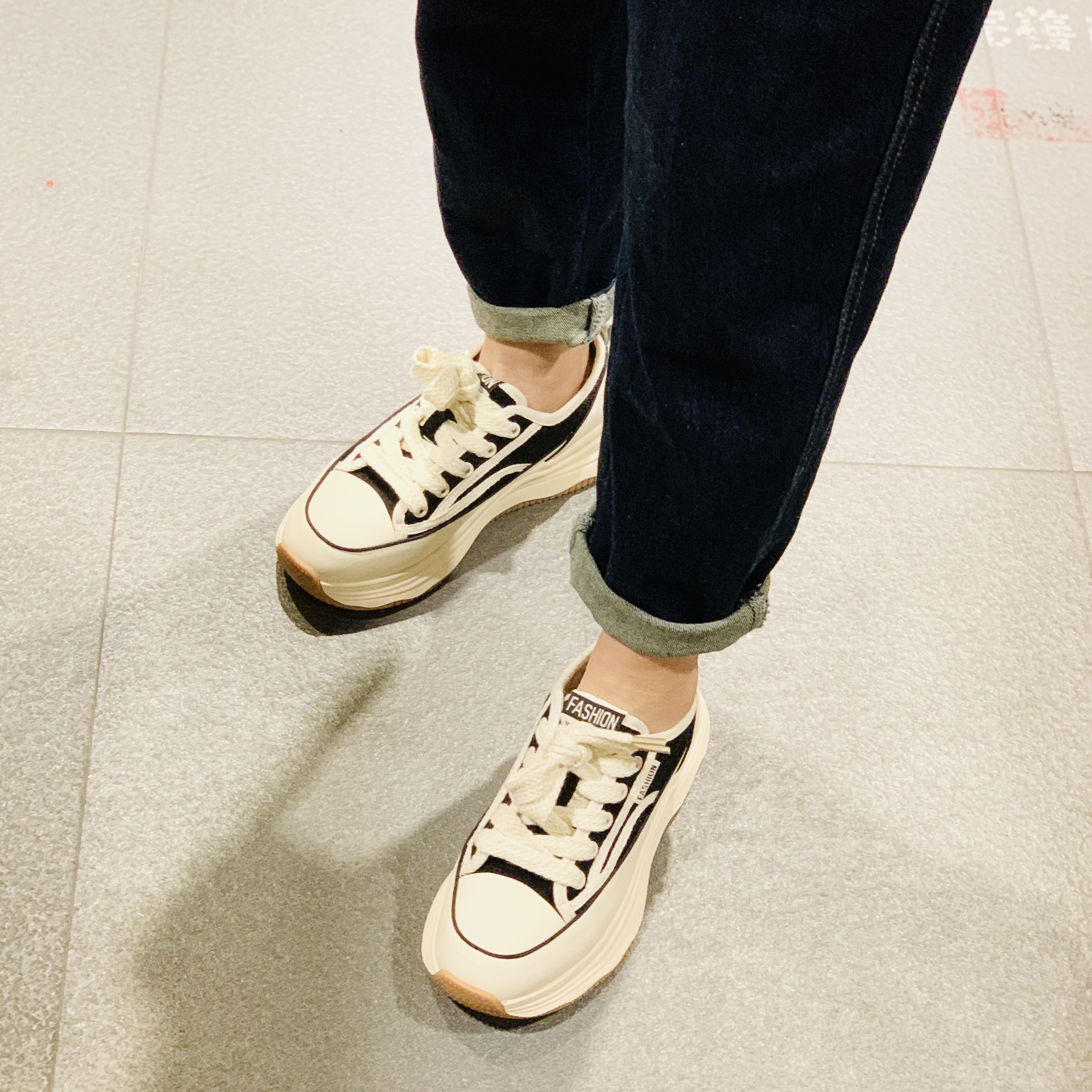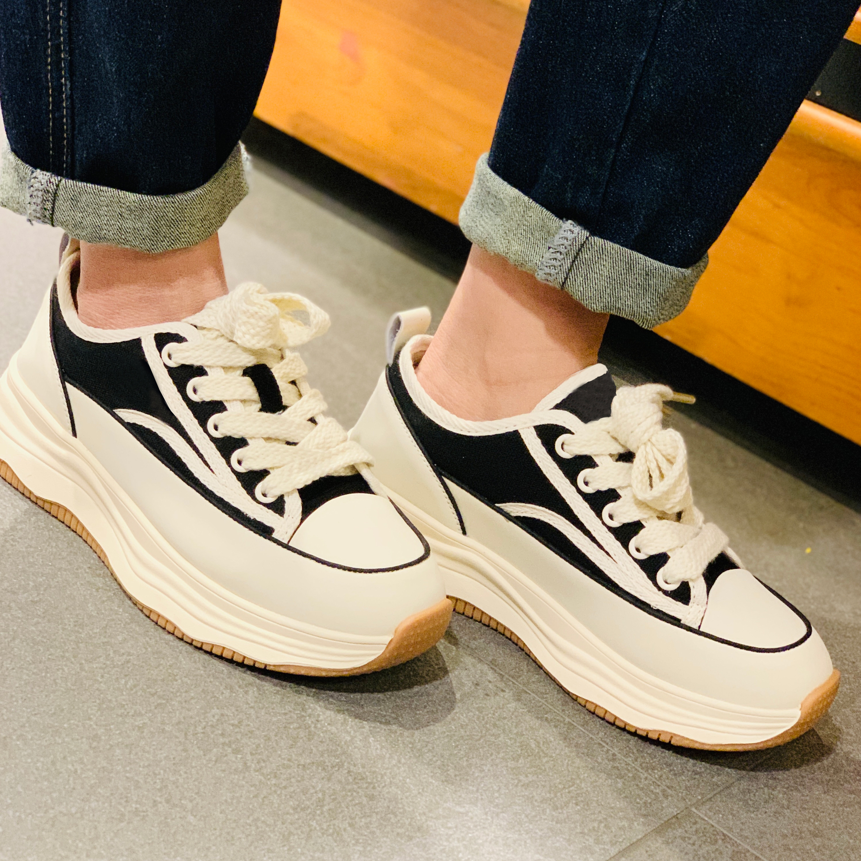 【百图lulu定制】【泡芙鞋】无字母贴布 超纤牛皮鞋面+猪皮里+牛津底+帆布 防滑耐磨透气 百搭厚底增高运动鞋