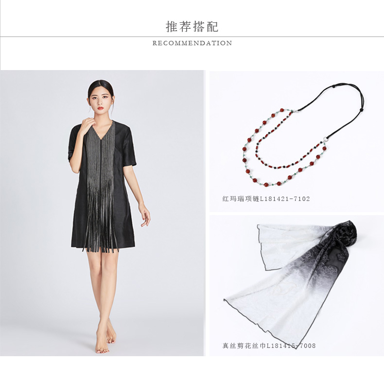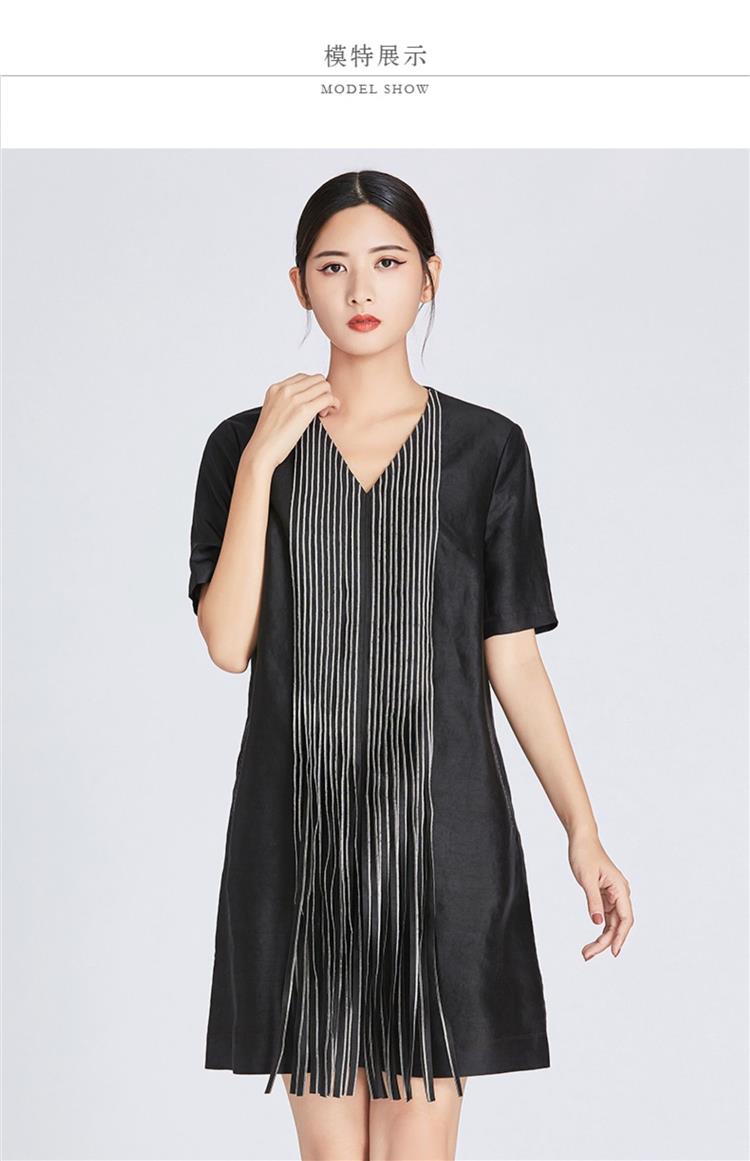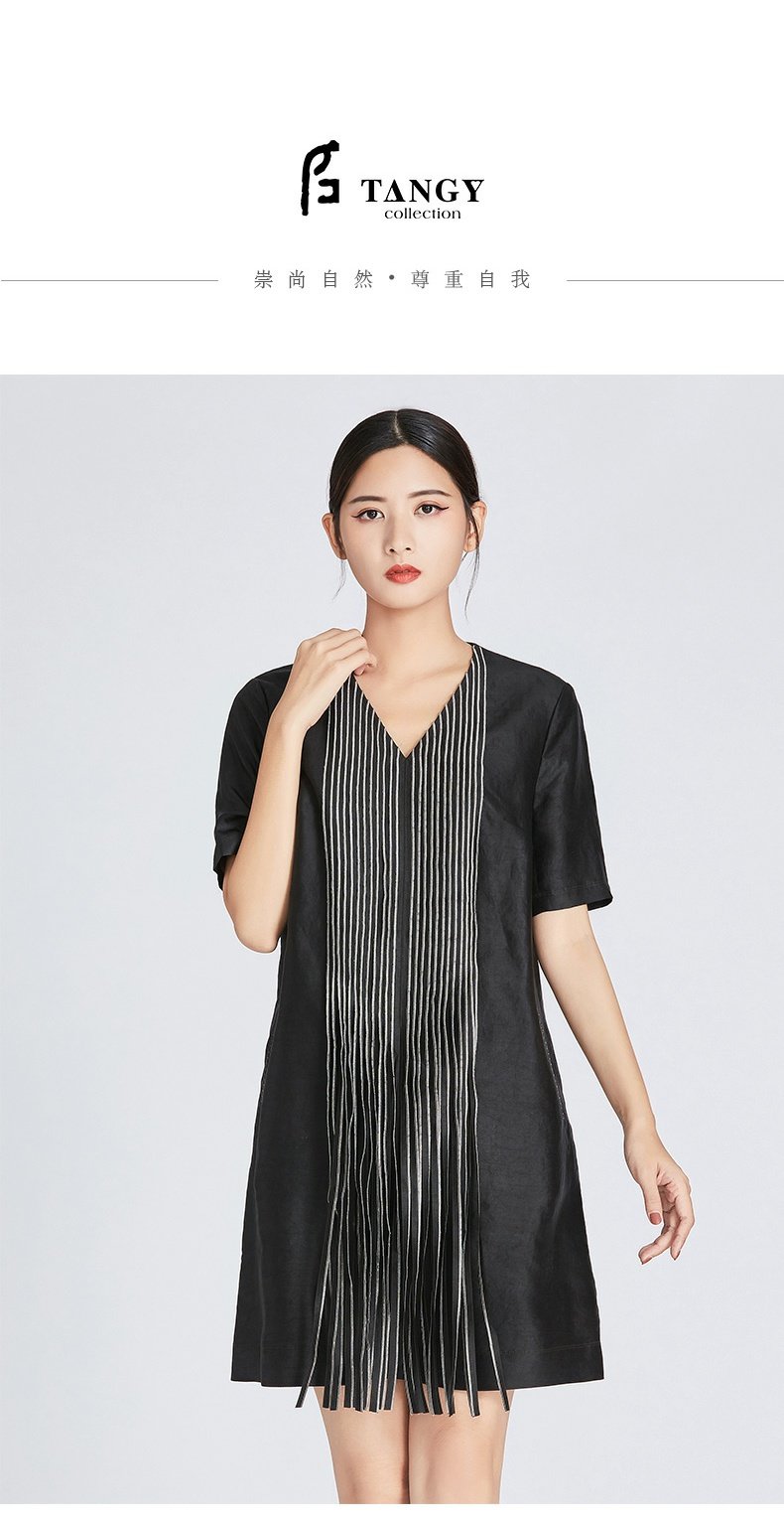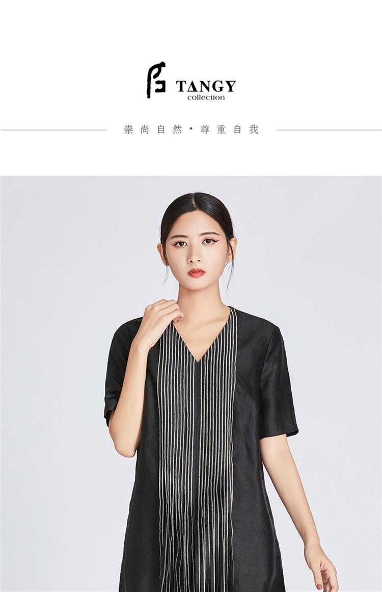 TANGY Collection/天意精品夏季新品莨迹系列线迹真丝莨绸连衣裙