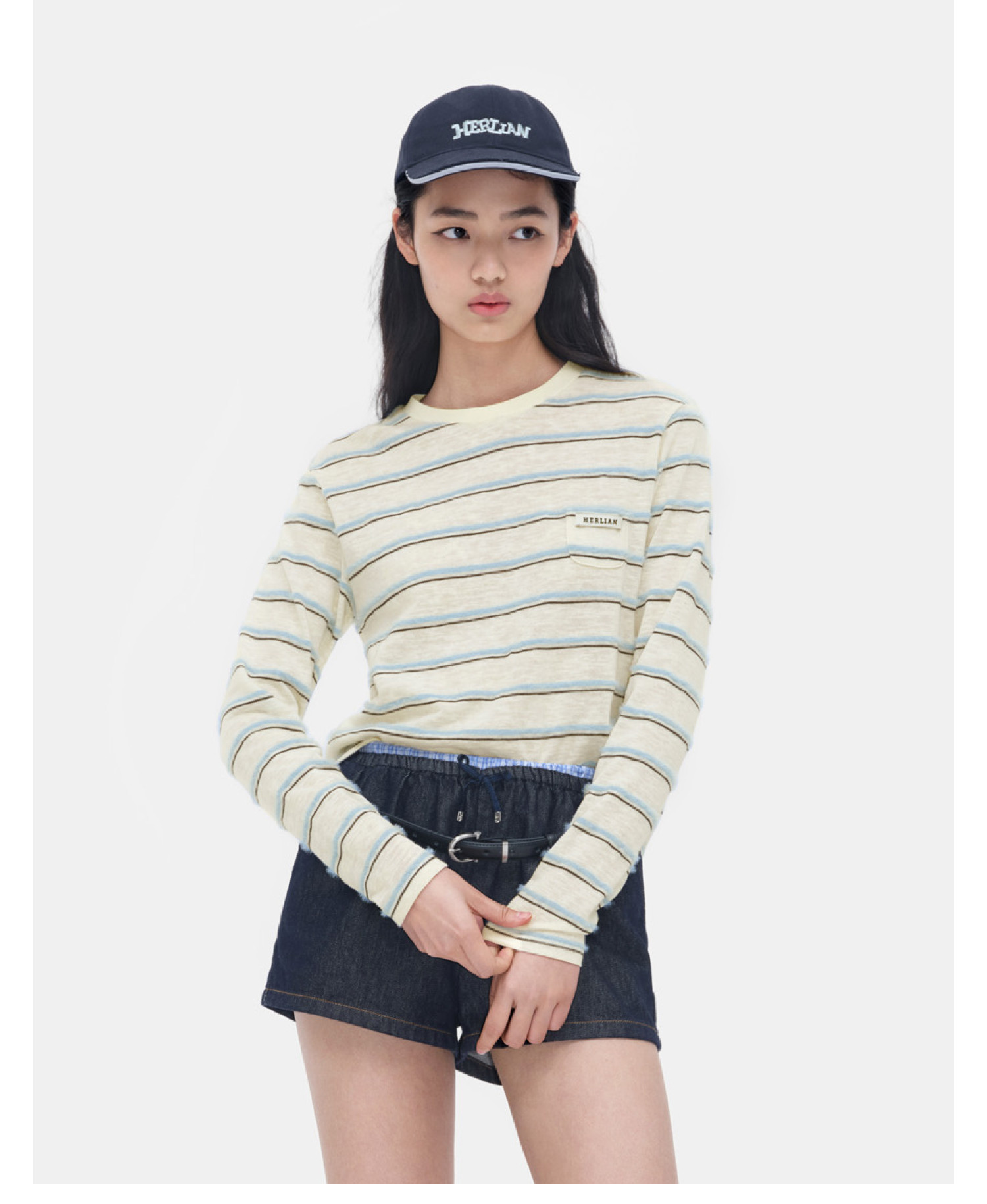 Herlian2026年春季新品条纹撞色女士长袖T恤logo刺绣打底衫