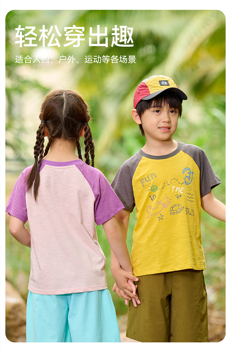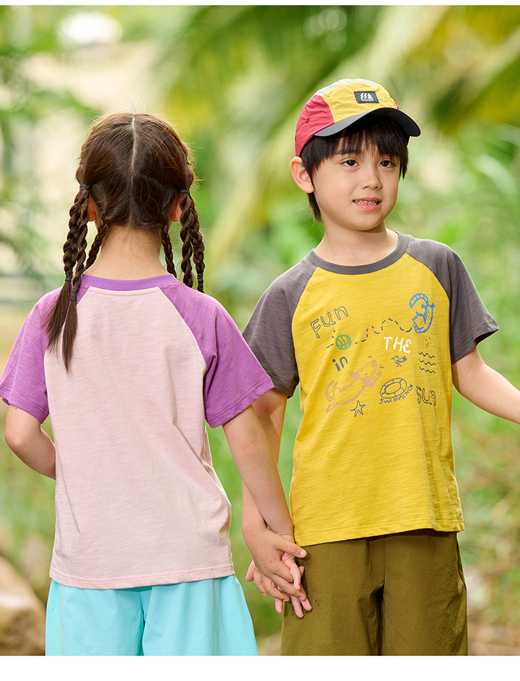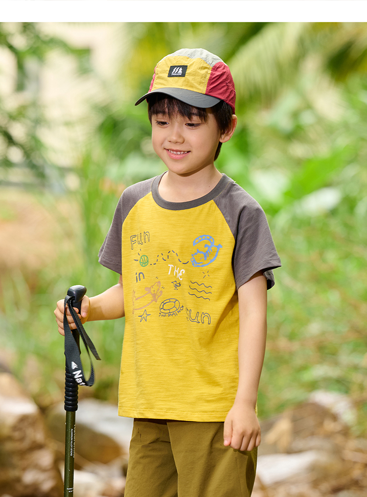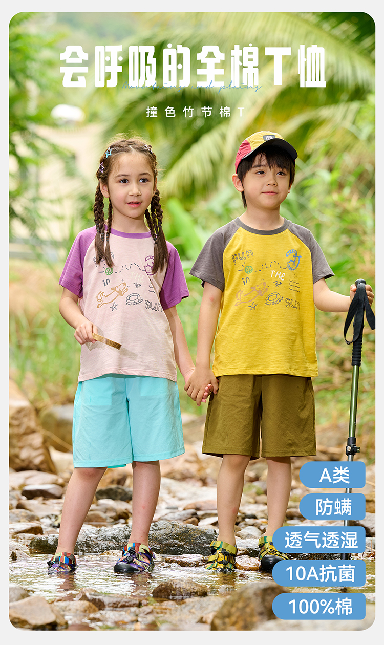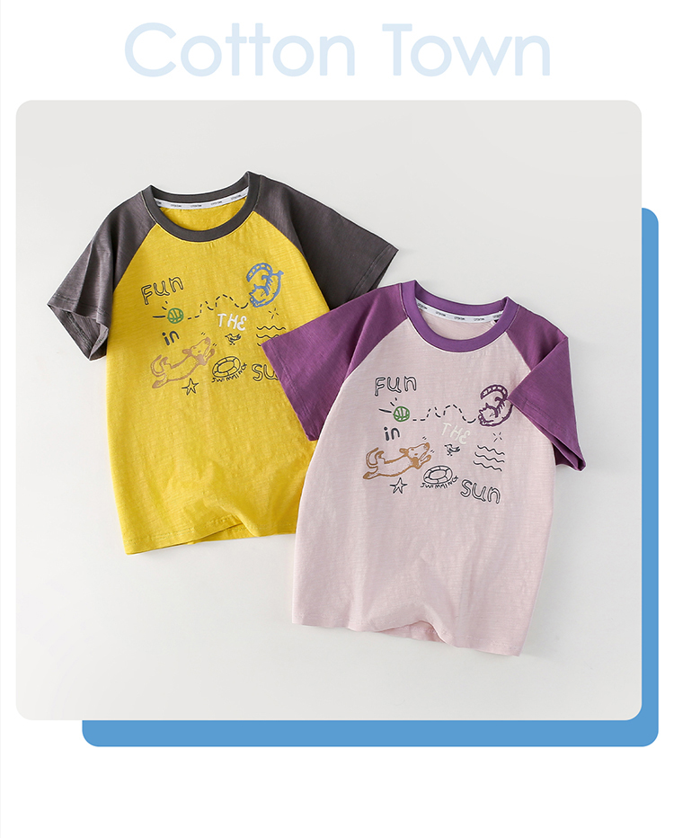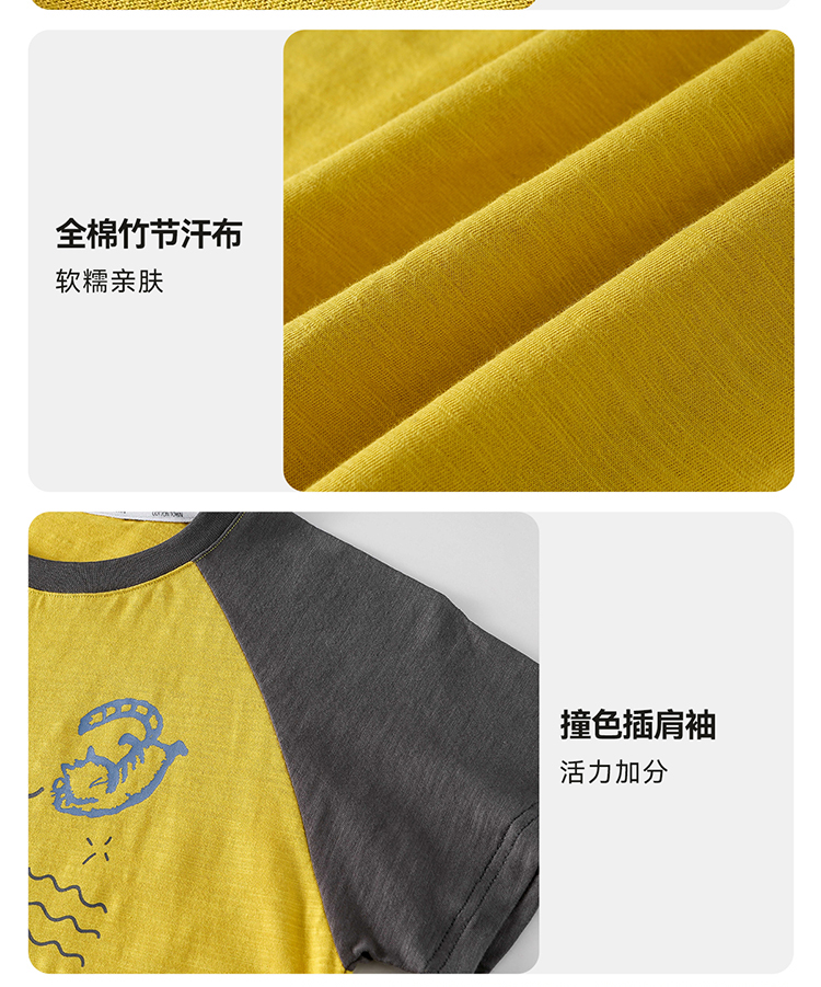 【10A抗菌纯棉】棉花堂夏款透气透湿撞色竹节棉印花儿童短袖T恤--- FA61163