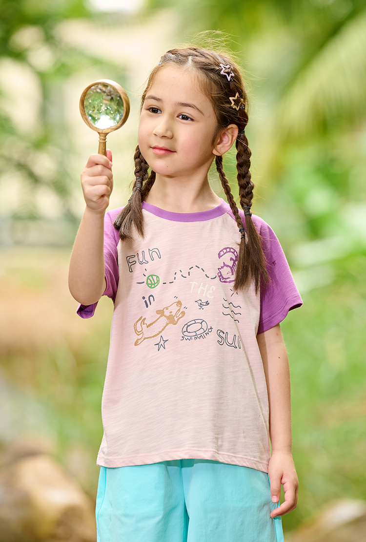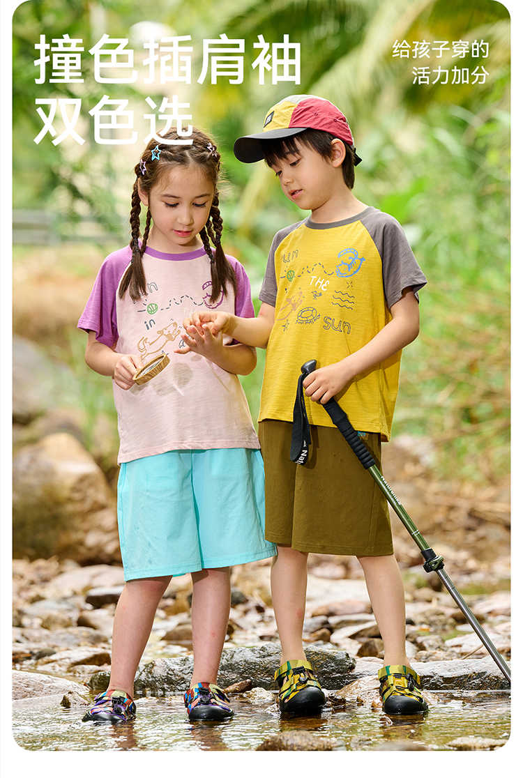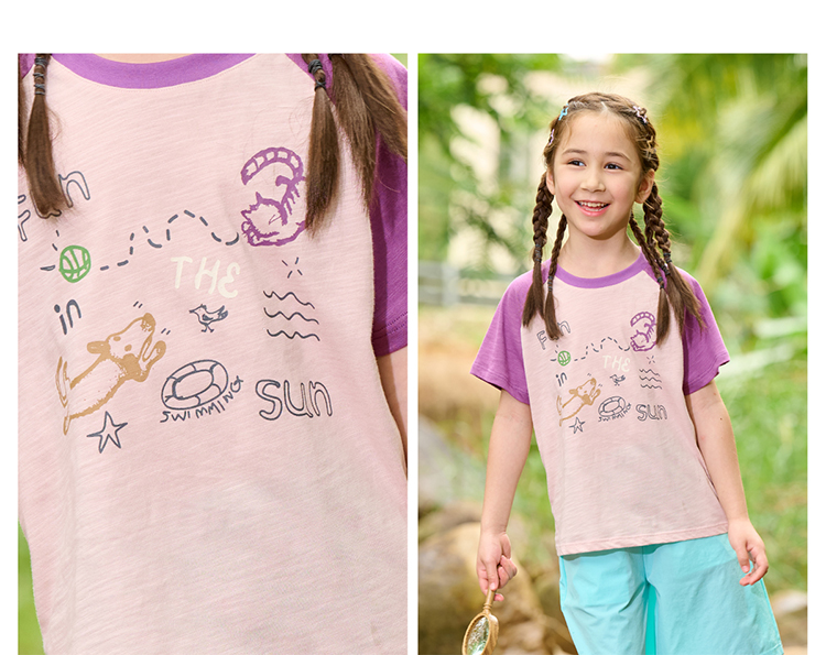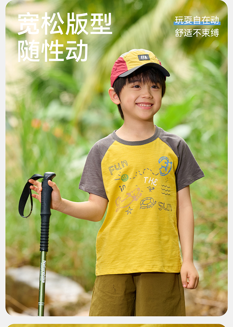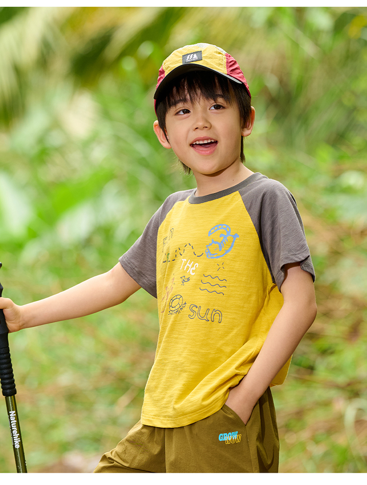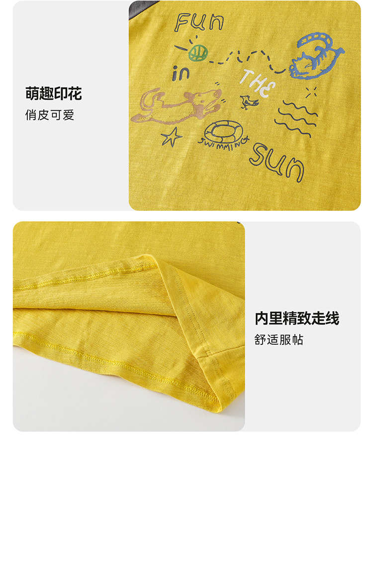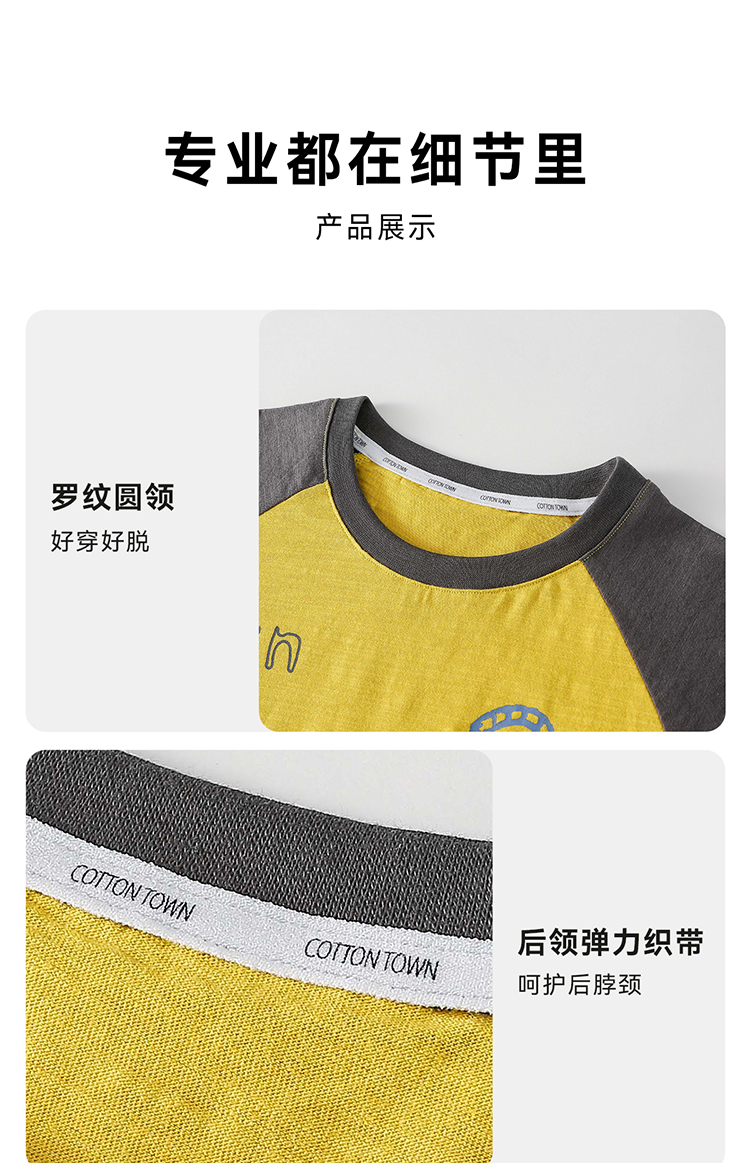 【10A抗菌纯棉】棉花堂夏款透气透湿撞色竹节棉印花儿童短袖T恤--- FA61163