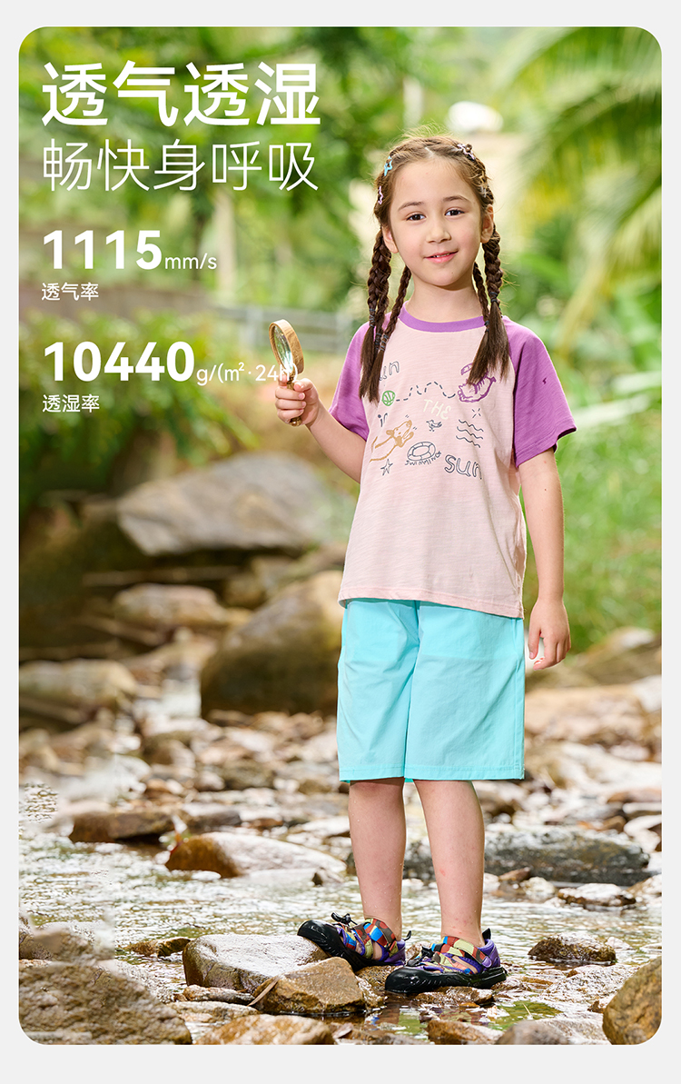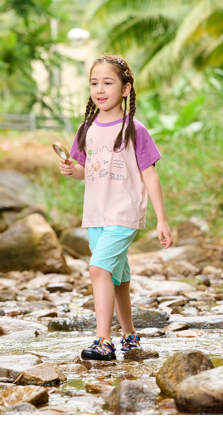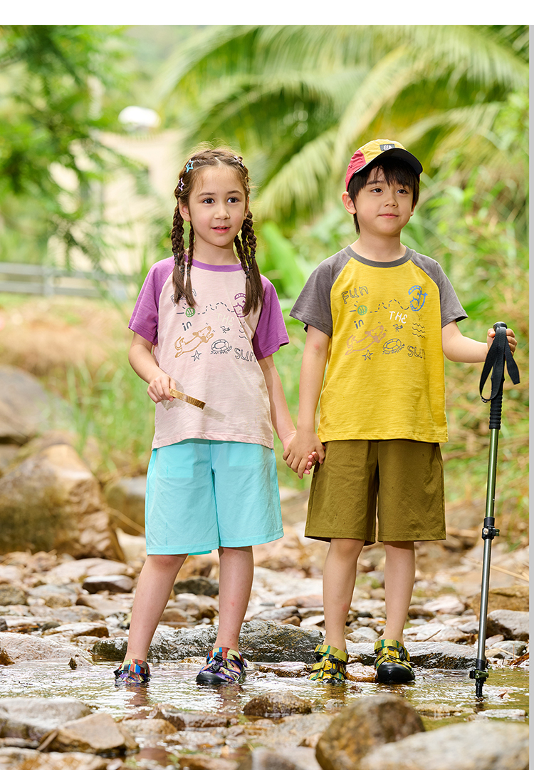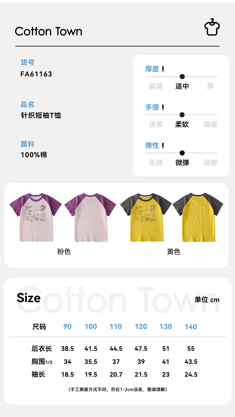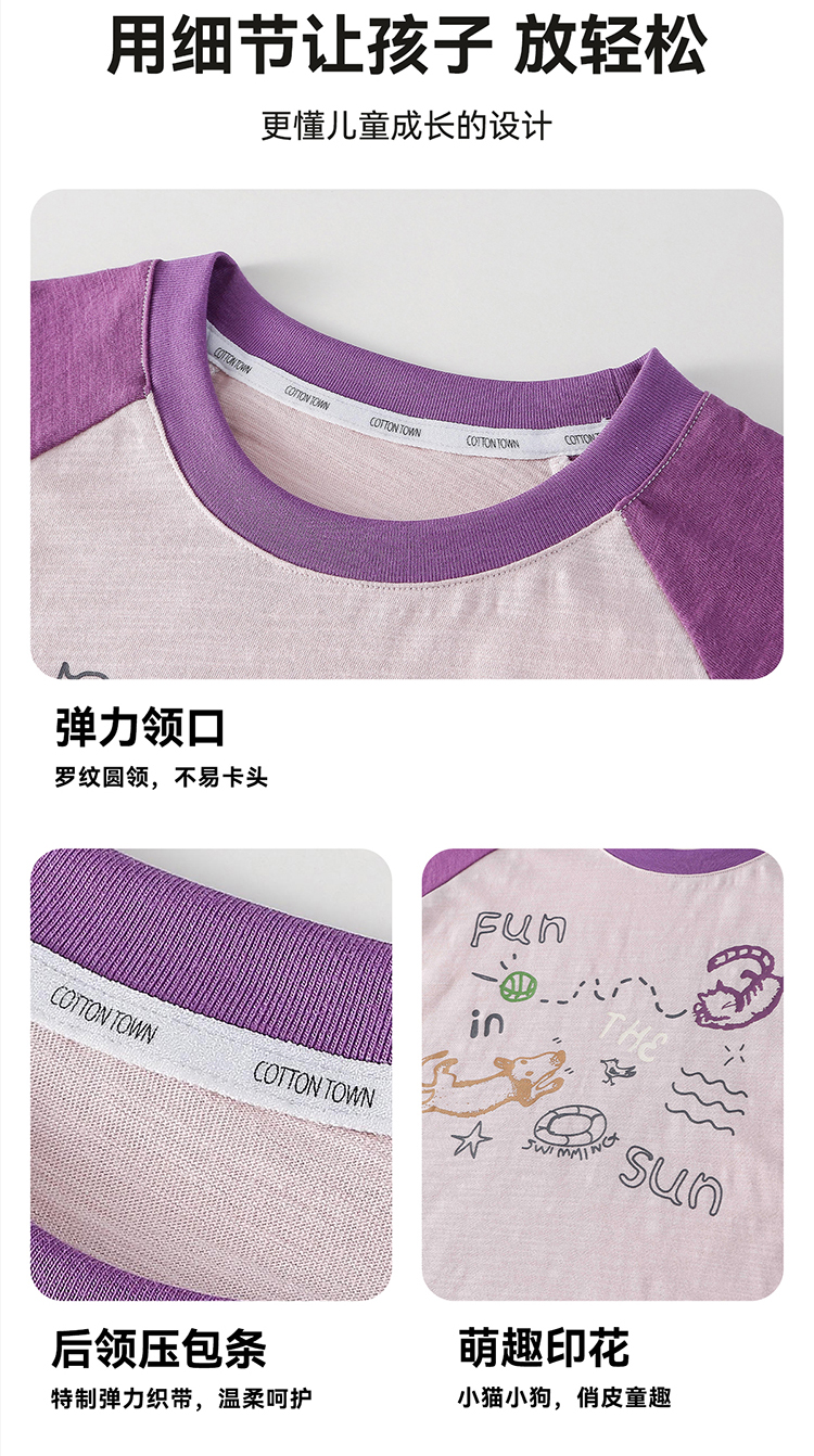 【10A抗菌纯棉】棉花堂夏款透气透湿撞色竹节棉印花儿童短袖T恤--- FA61163