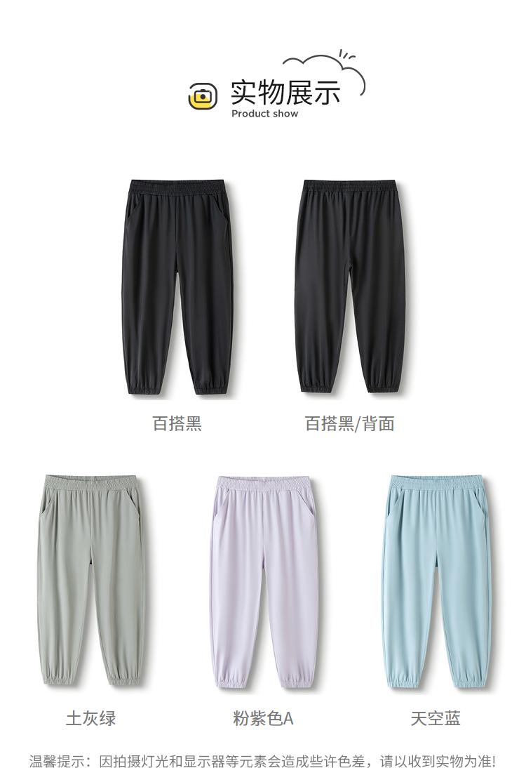 巴拉巴拉女童儿童防晒裤子夏装新款凉感透气男童滑滑裤跑步裤