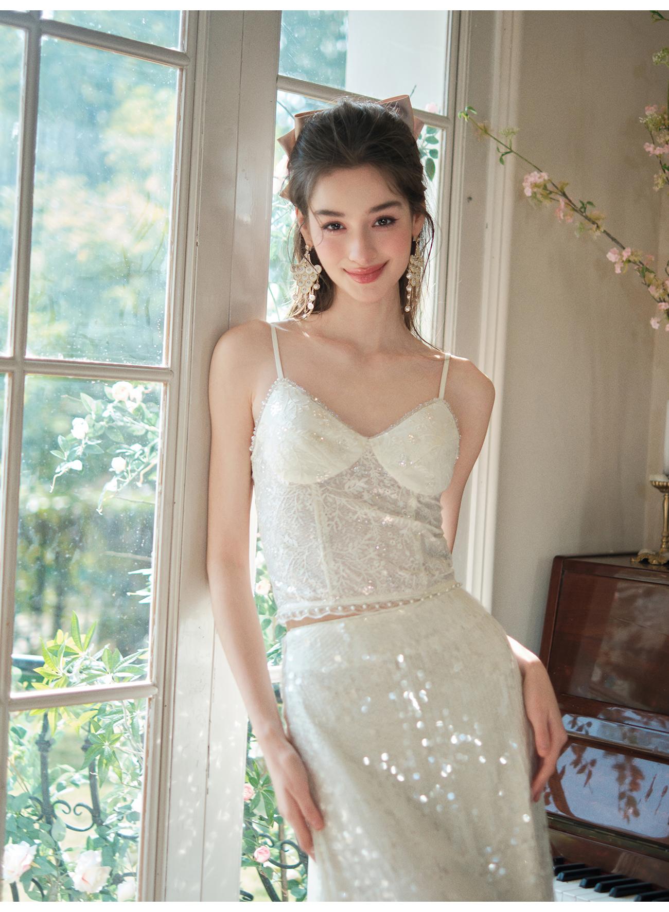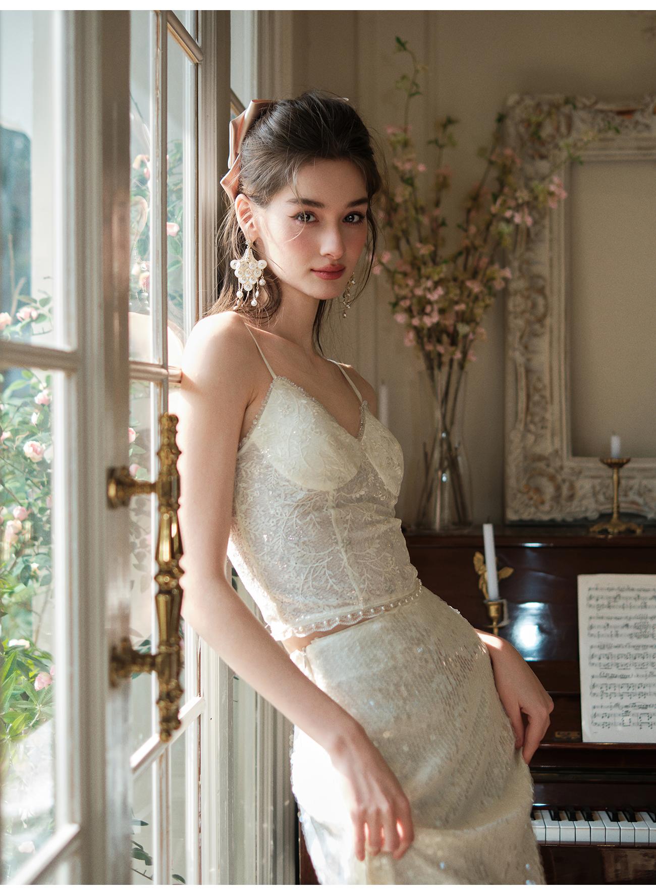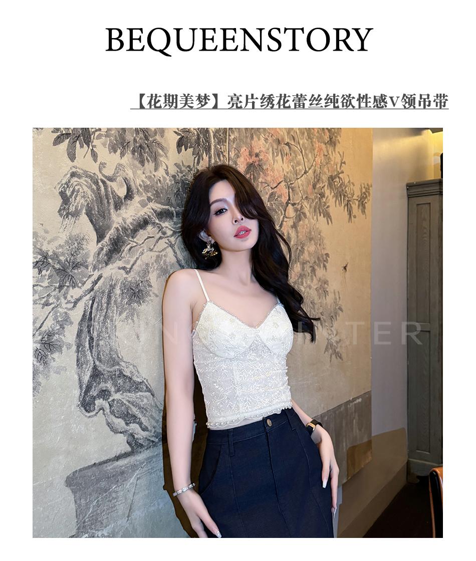 【大货捡漏,不退不换】 【花期美梦】法式重工亮片绣花蕾丝肌理感纯欲性感V领吊带