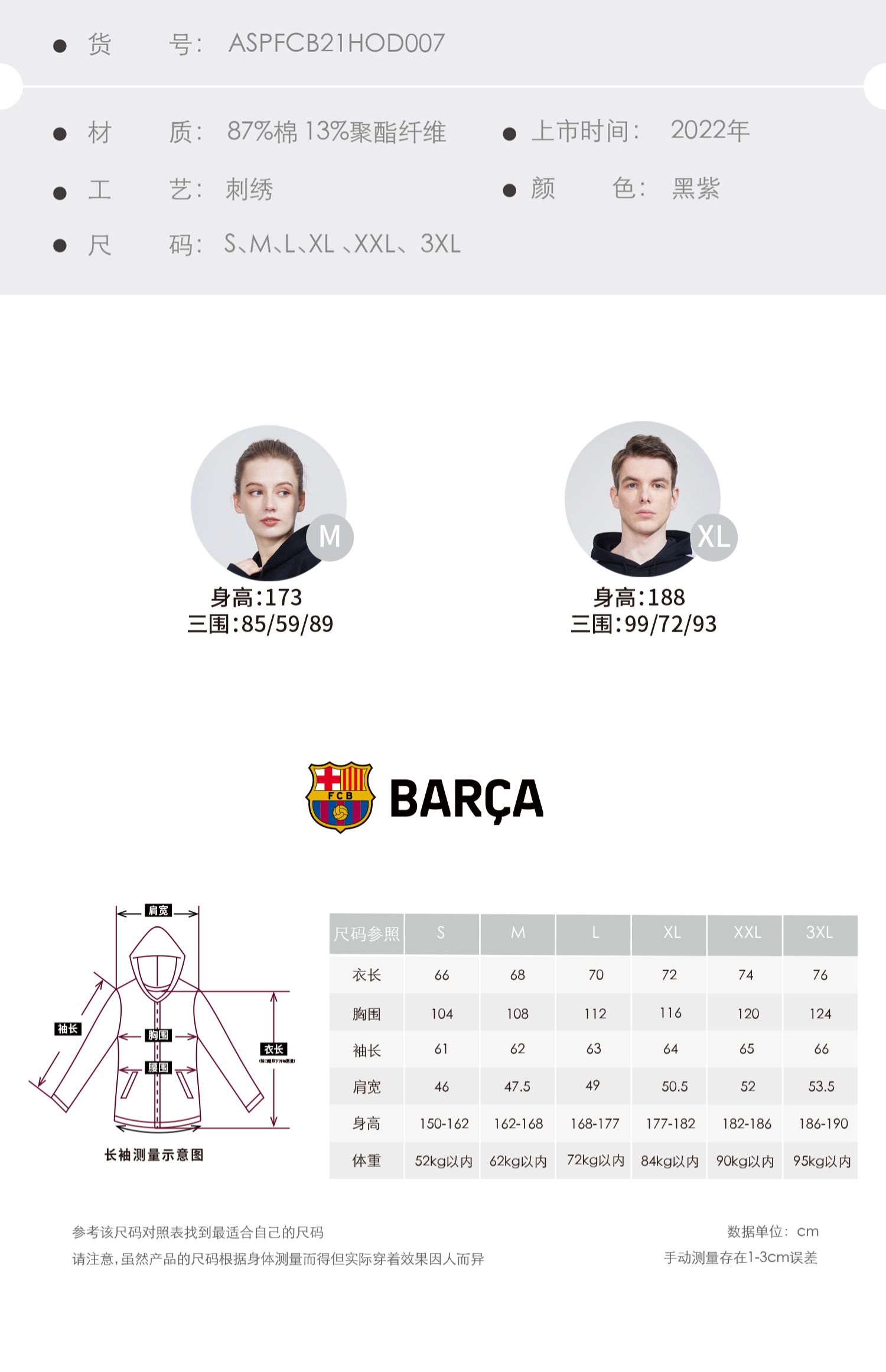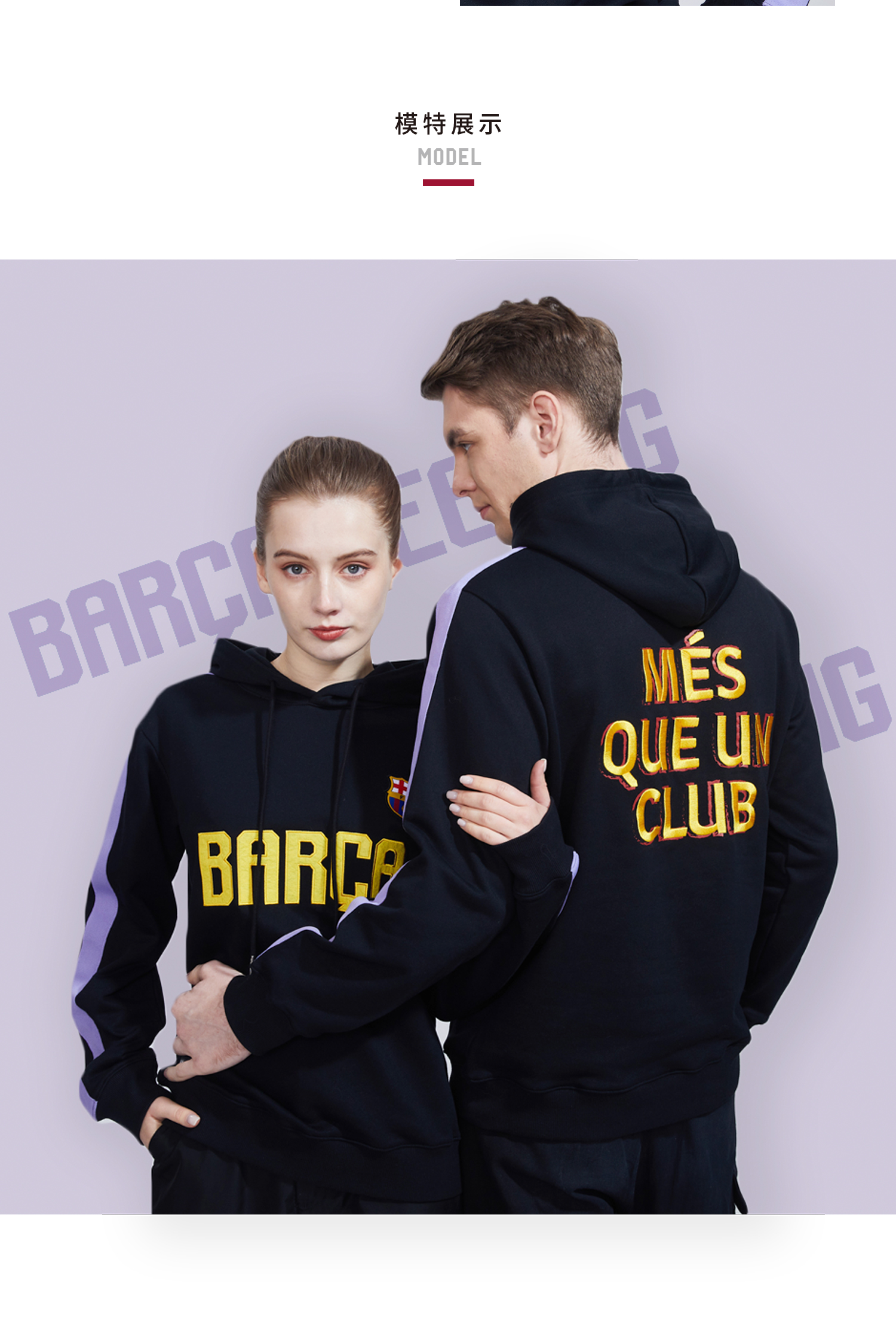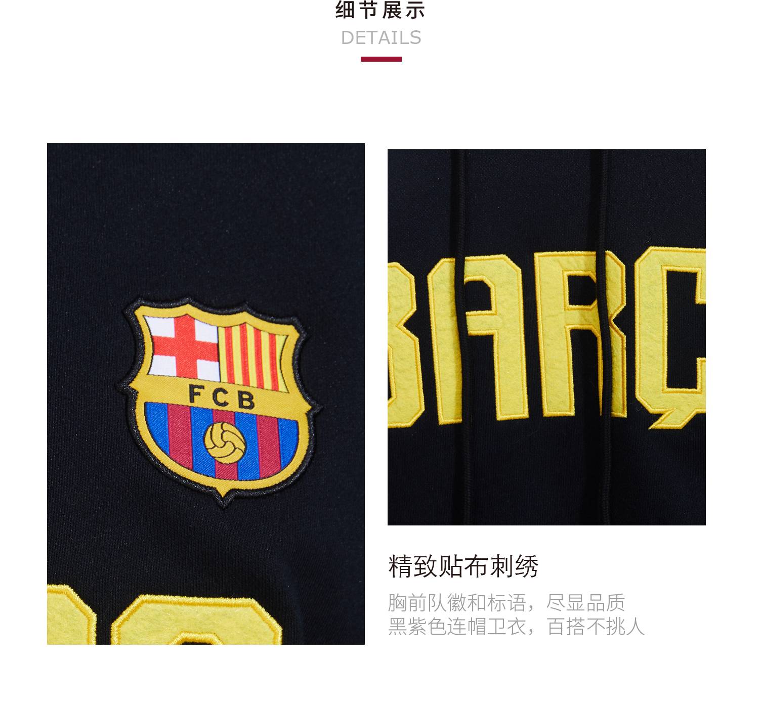 巴塞罗那俱乐部官方商品丨巴萨新款毛圈卫衣套头帽衫男女同款刺绣