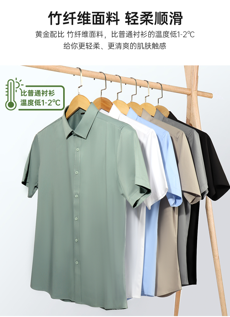 【竹纤维弹力商务衬衫】长袖内搭弹力免烫衬衫柔软修身上衣