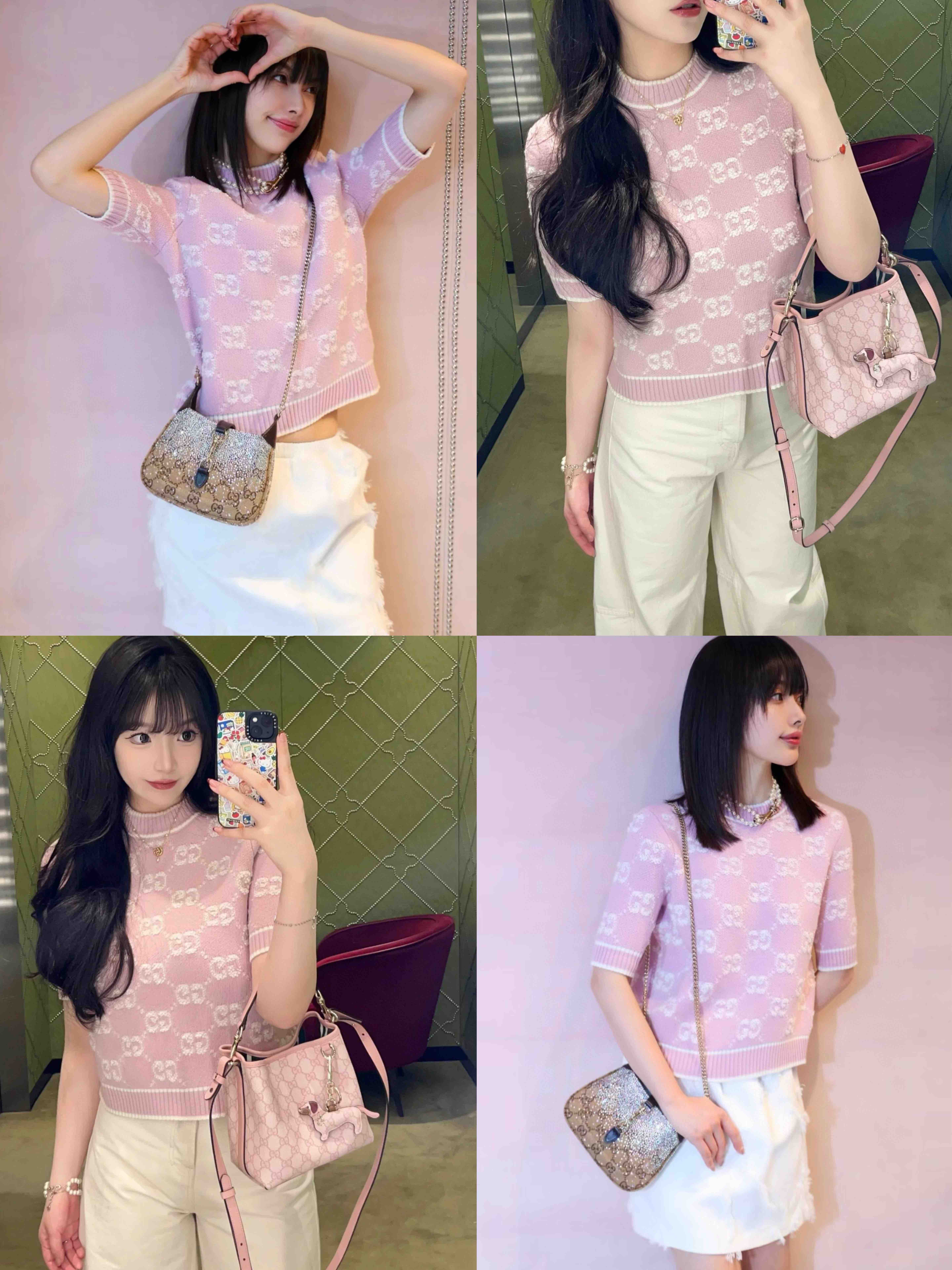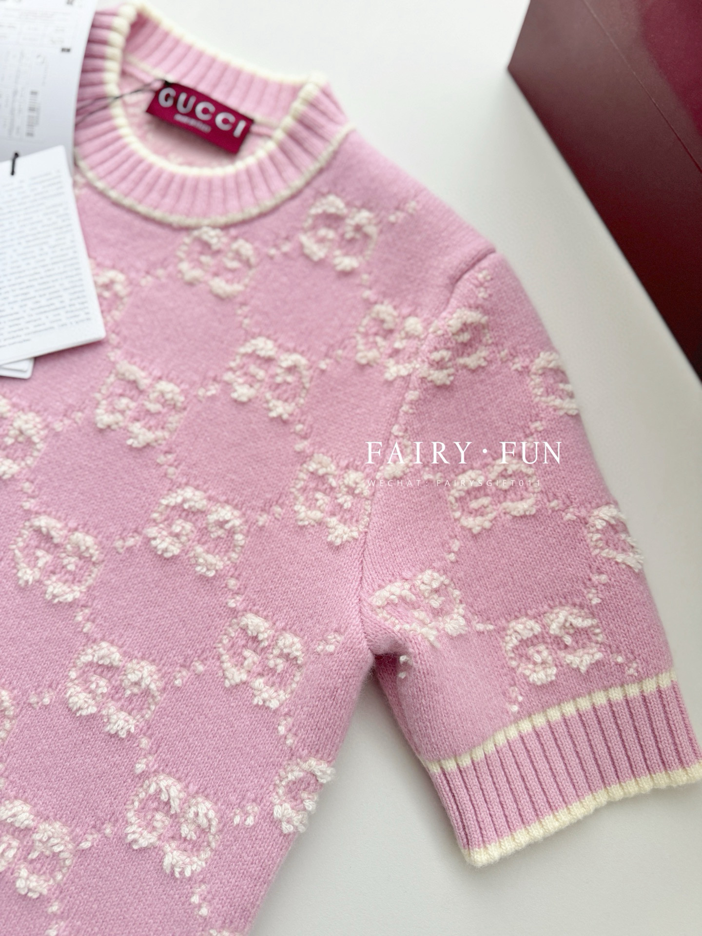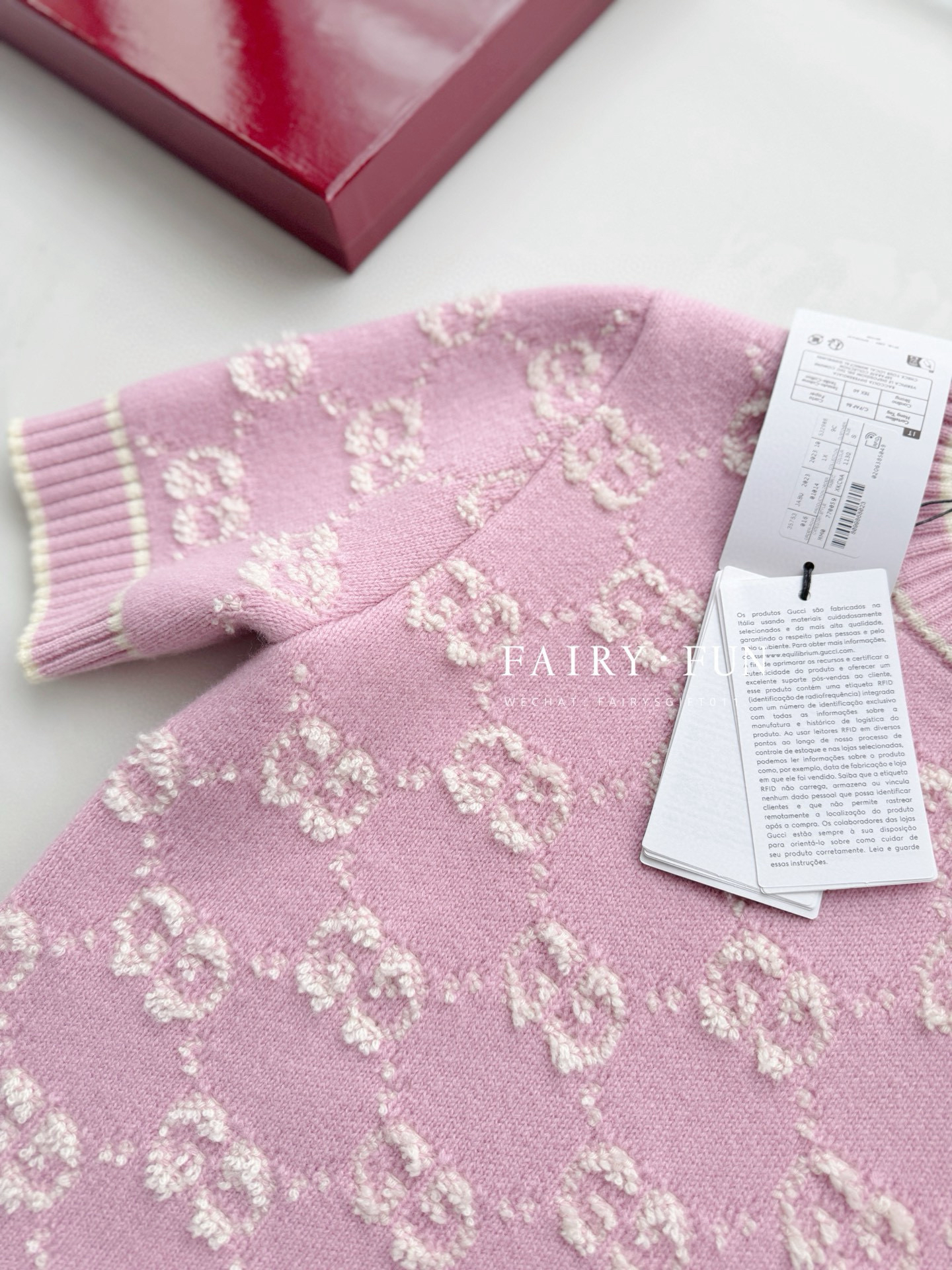 GG-S 粉紫色羊毛结子绒短袖/开衫