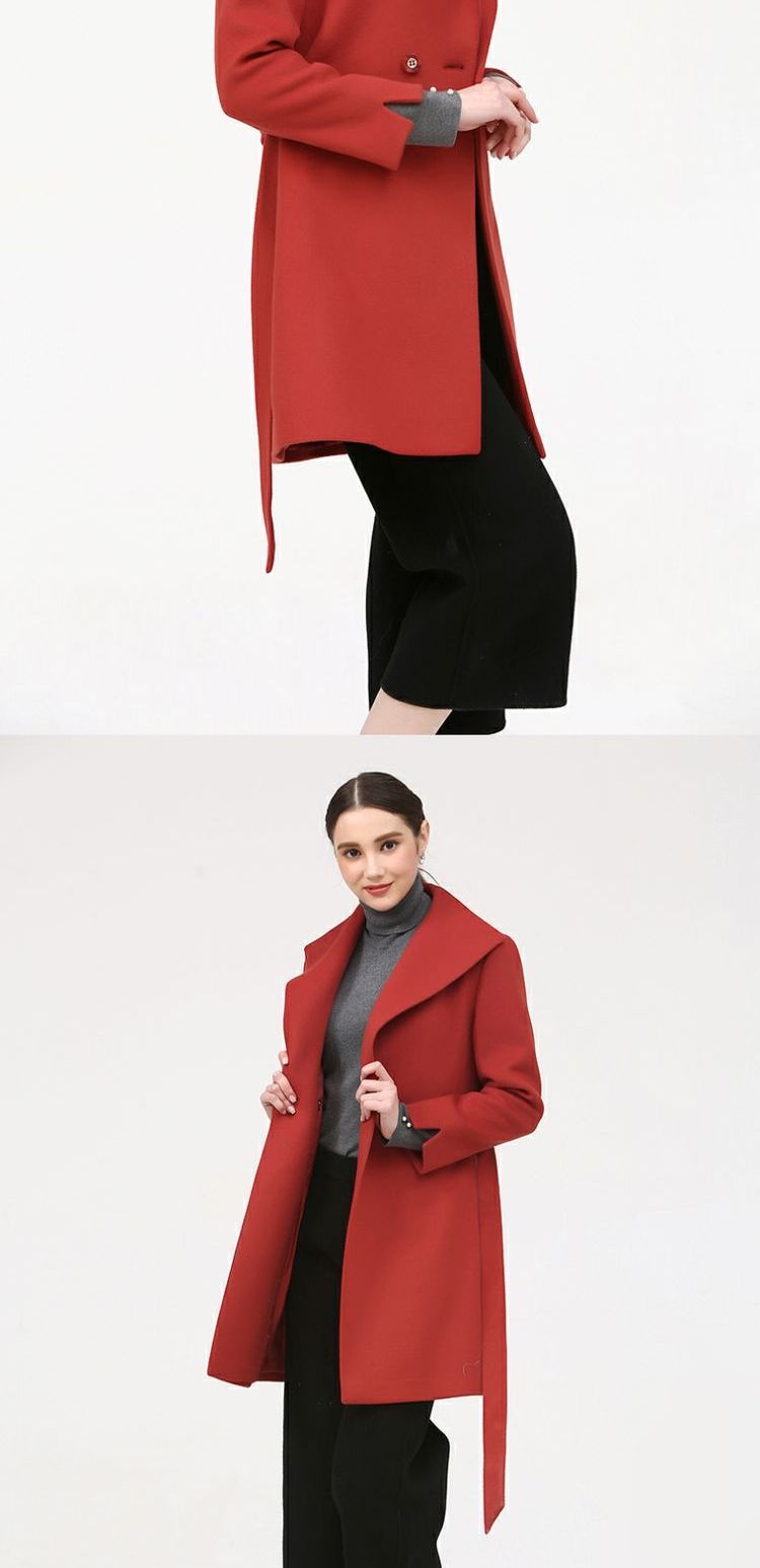 佐尔美冬季新款纯色中长款女装修身羊毛大衣毛呢外套女E54ZZ14