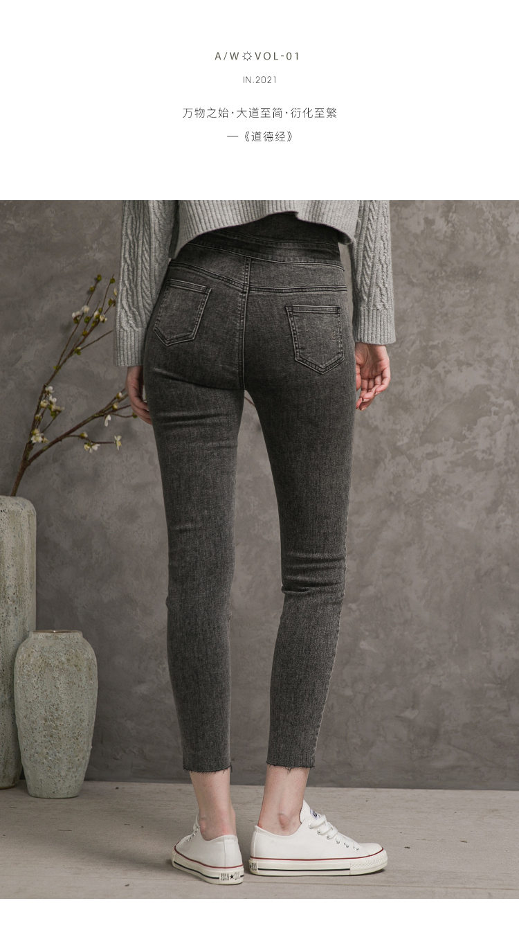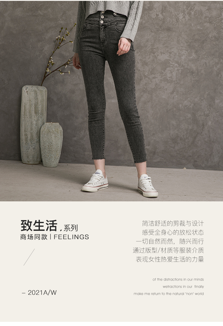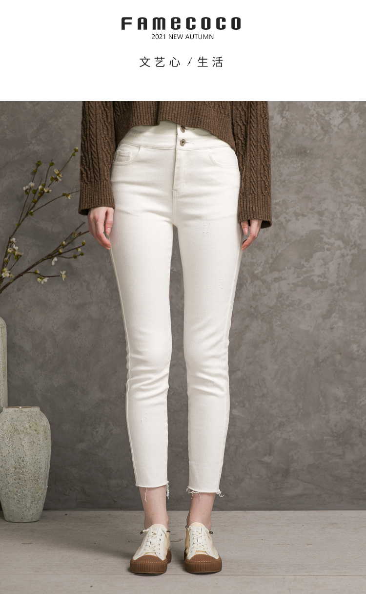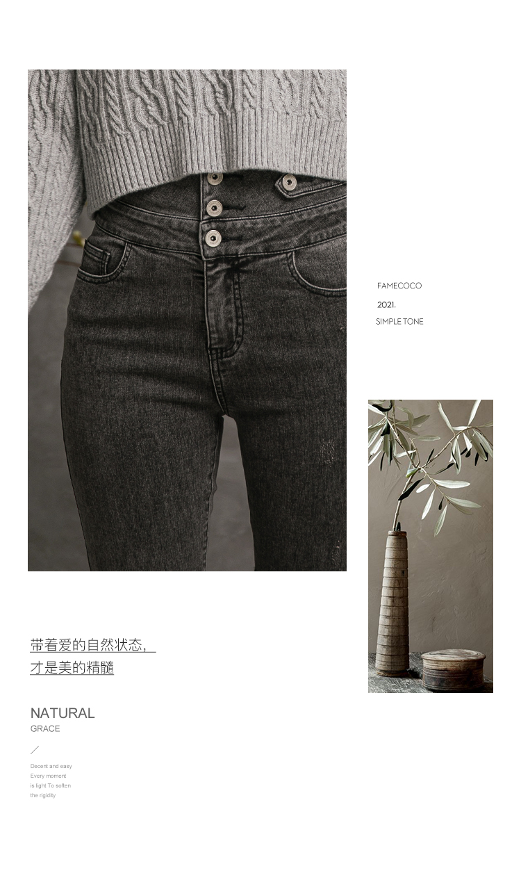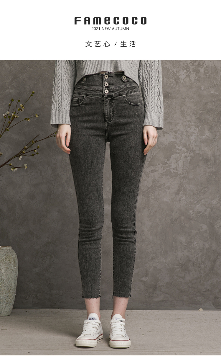 famecoco范可儿高腰牛仔裤女士秋季纯棉紧身长裤F216GA013