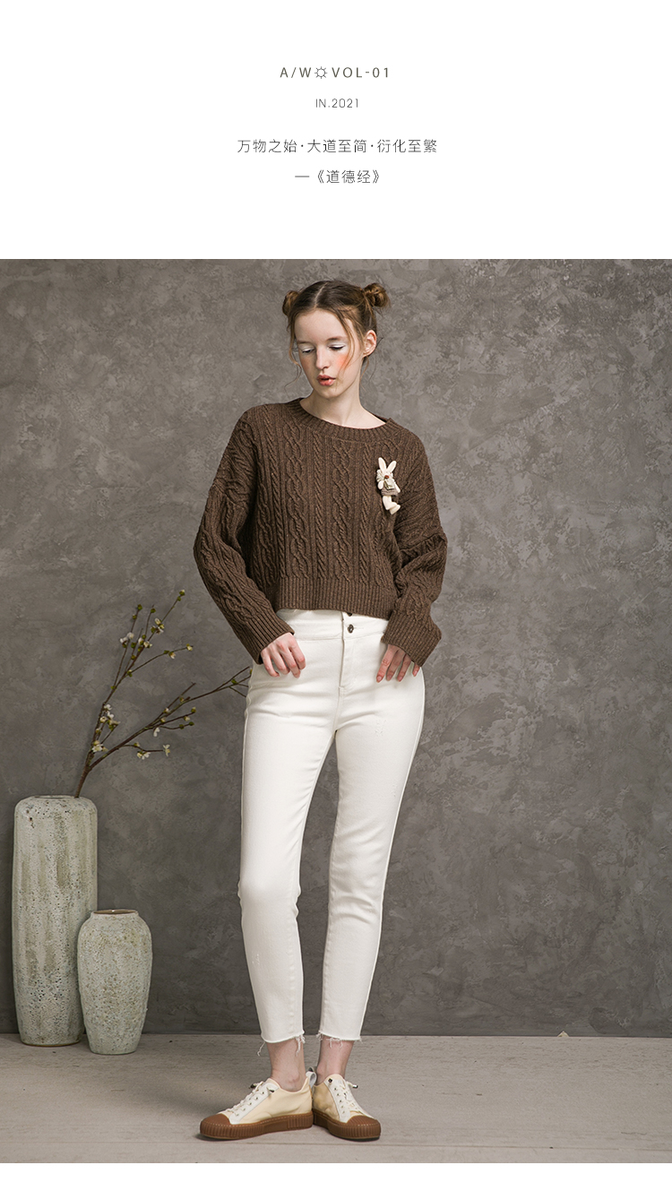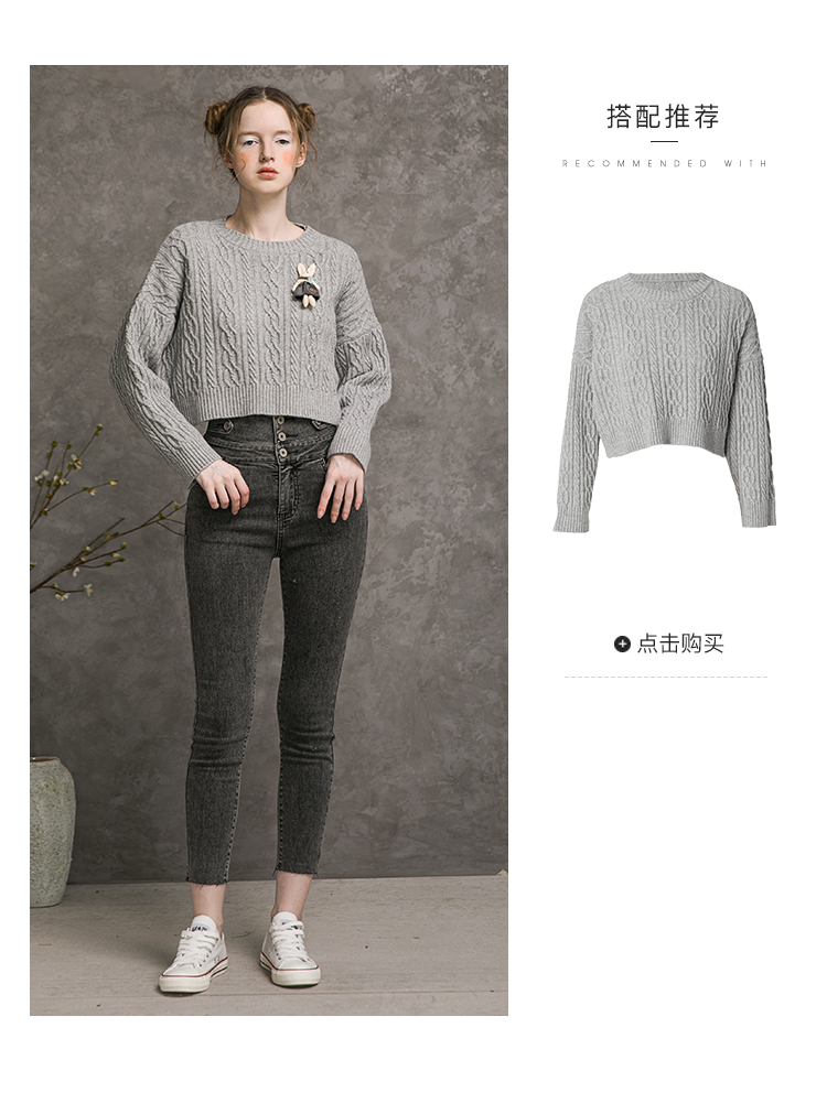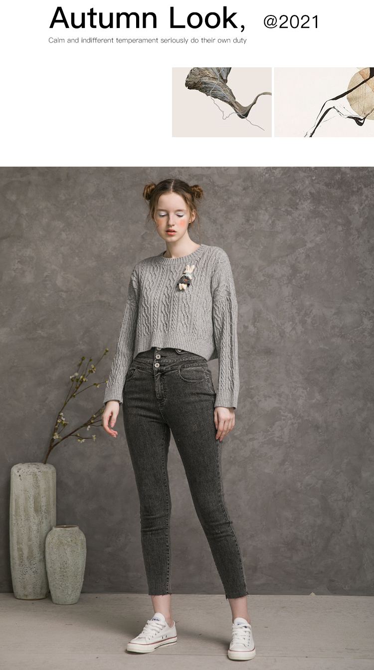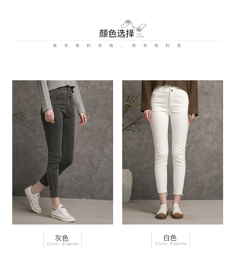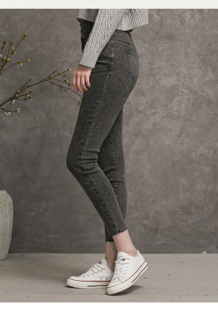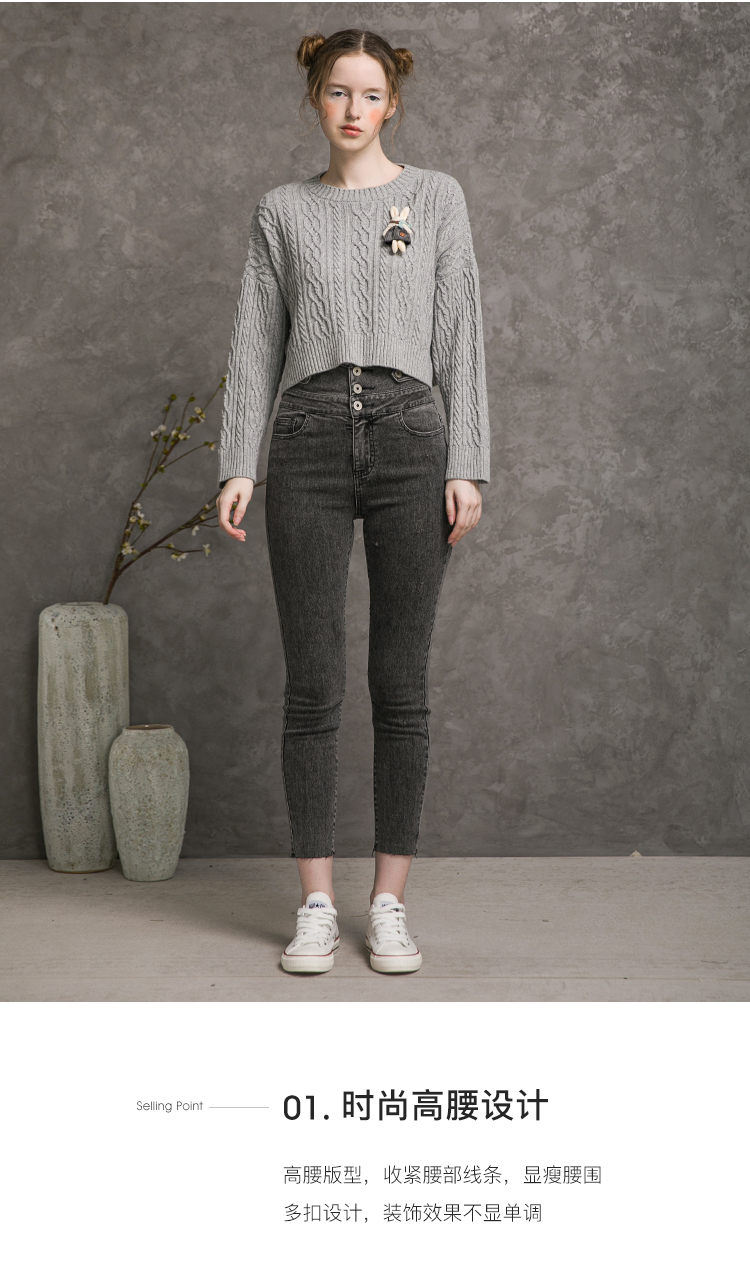 famecoco范可儿高腰牛仔裤女士秋季纯棉紧身长裤F216GA013