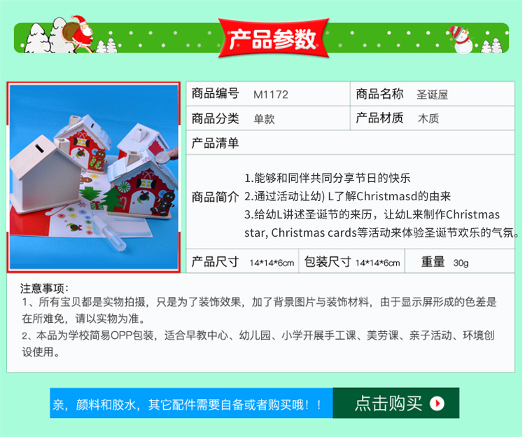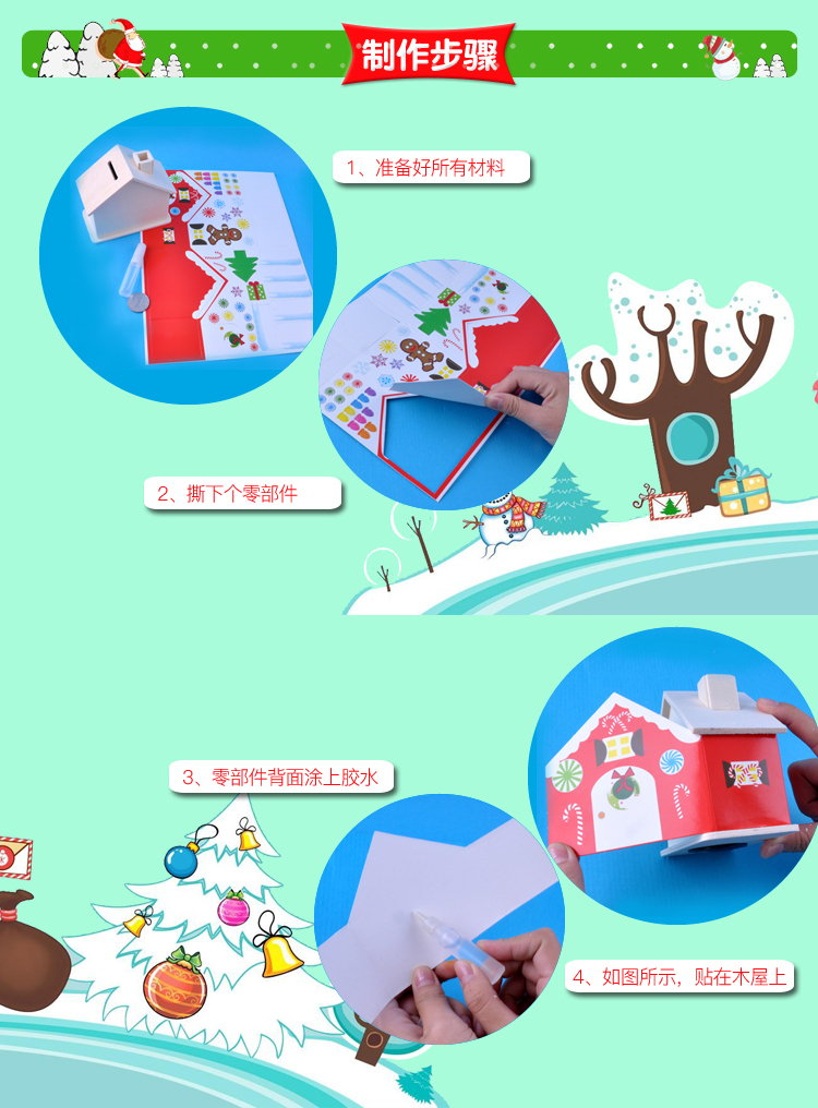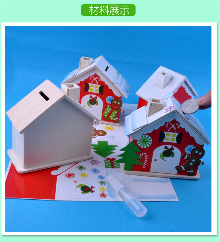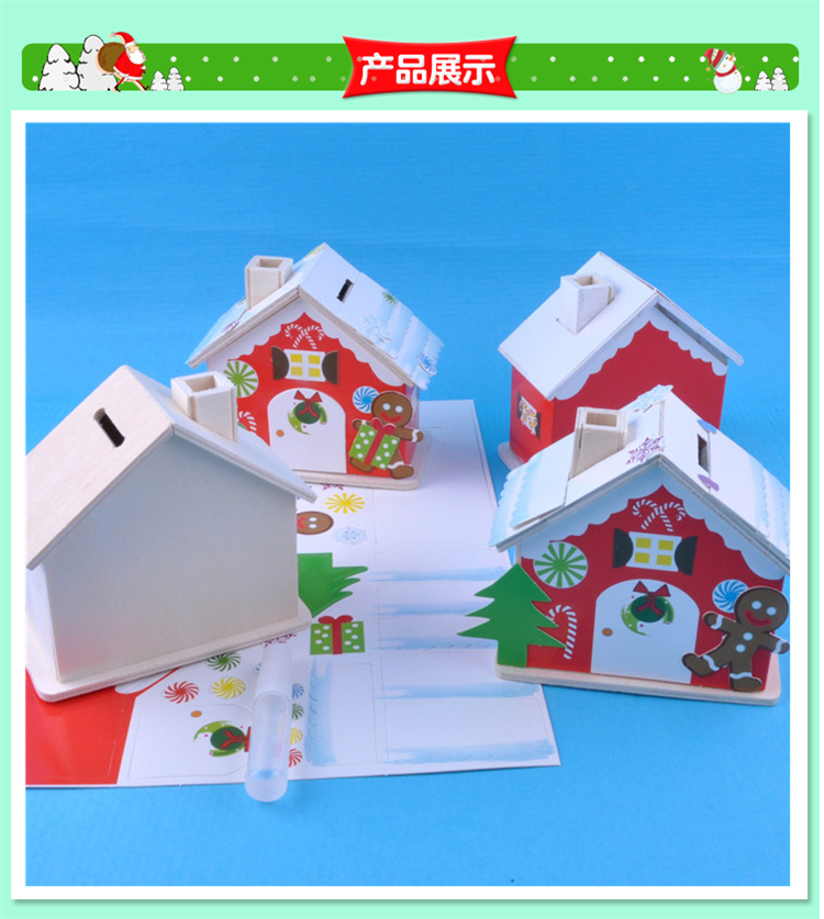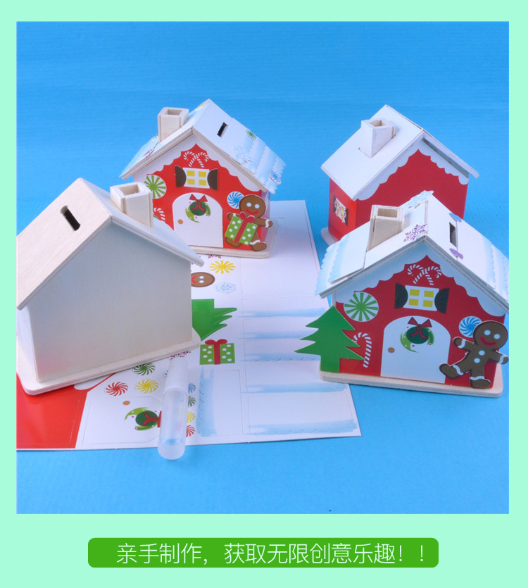圣诞节手工diy木房子存钱罐幼儿园立体3D圣诞屋儿童亲子制作材料