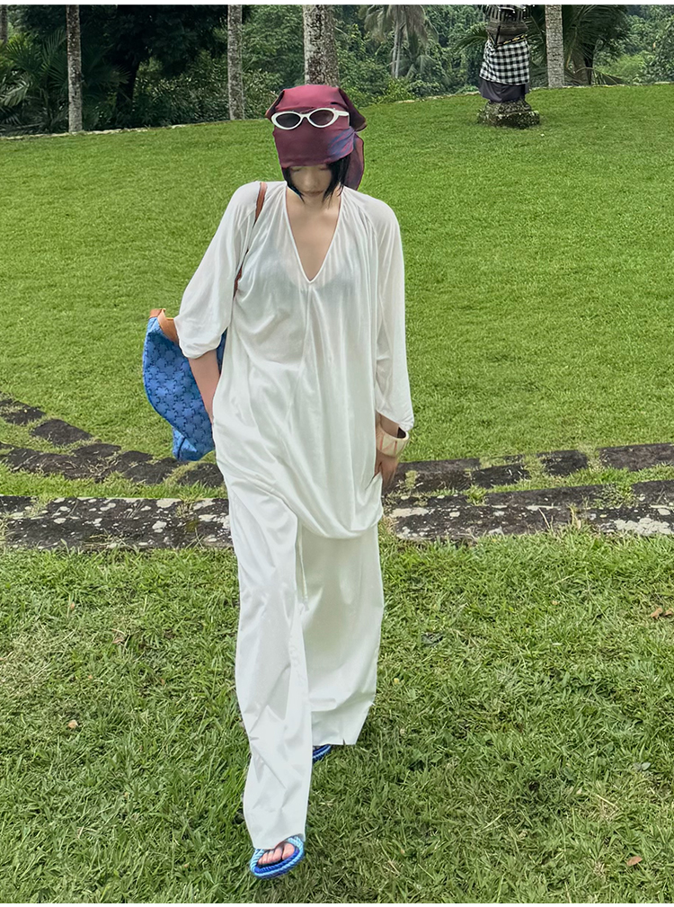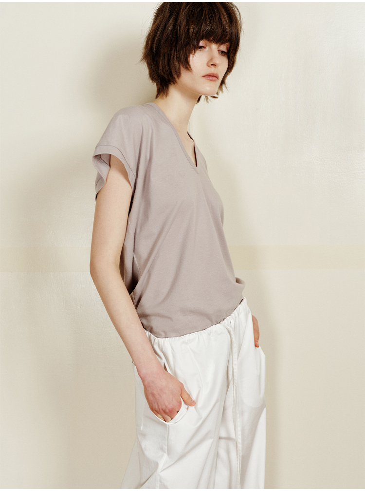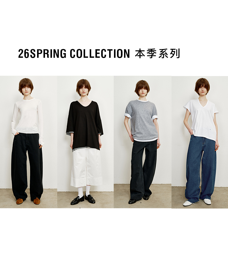 hidemi副线小h 简约U领松弛宽松T恤上衣