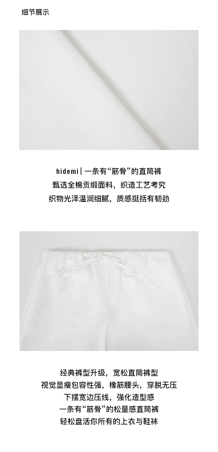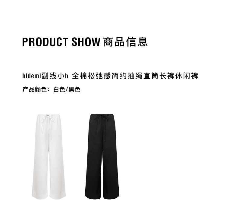 hidemi副线小h 全棉松弛感简约抽绳直筒长裤休闲裤