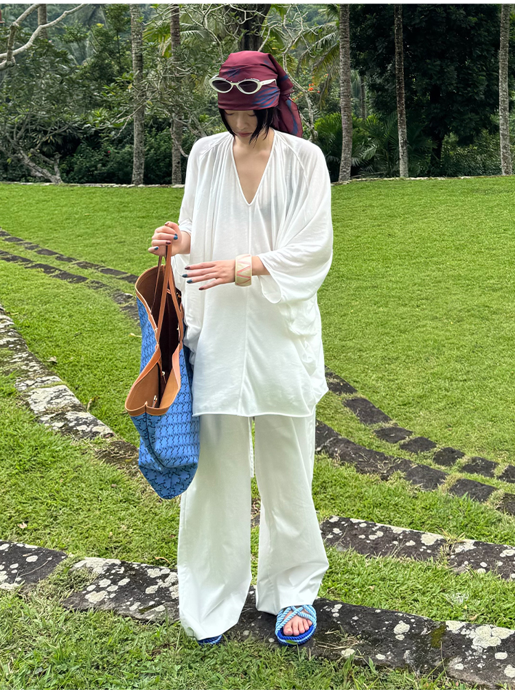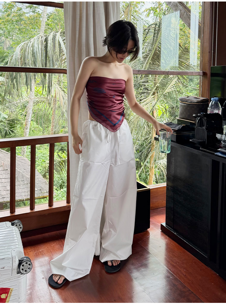 HIDEMI 到店必入垂坠感柔顺舒适透气松紧带宽松休闲空气感长裤