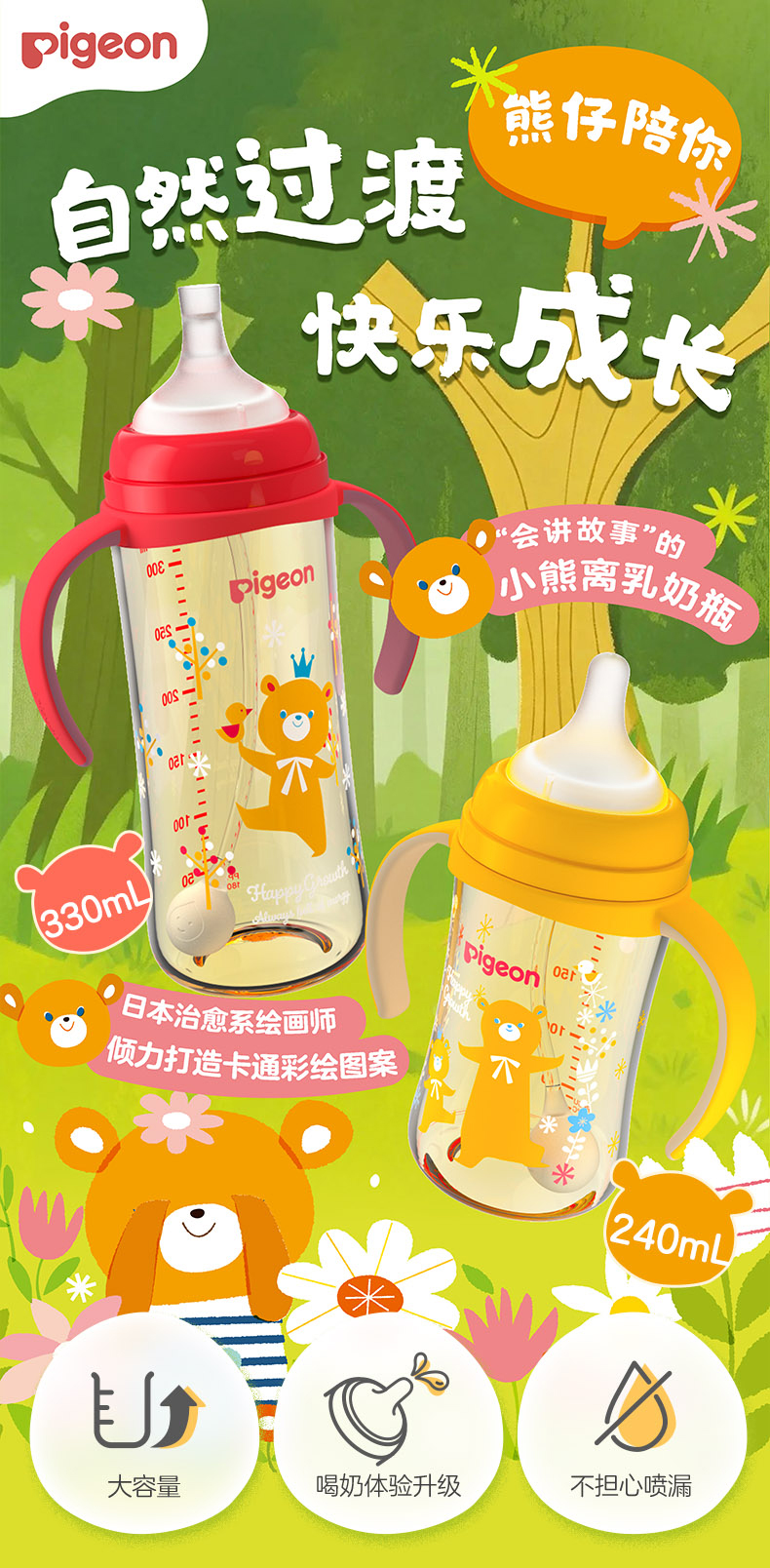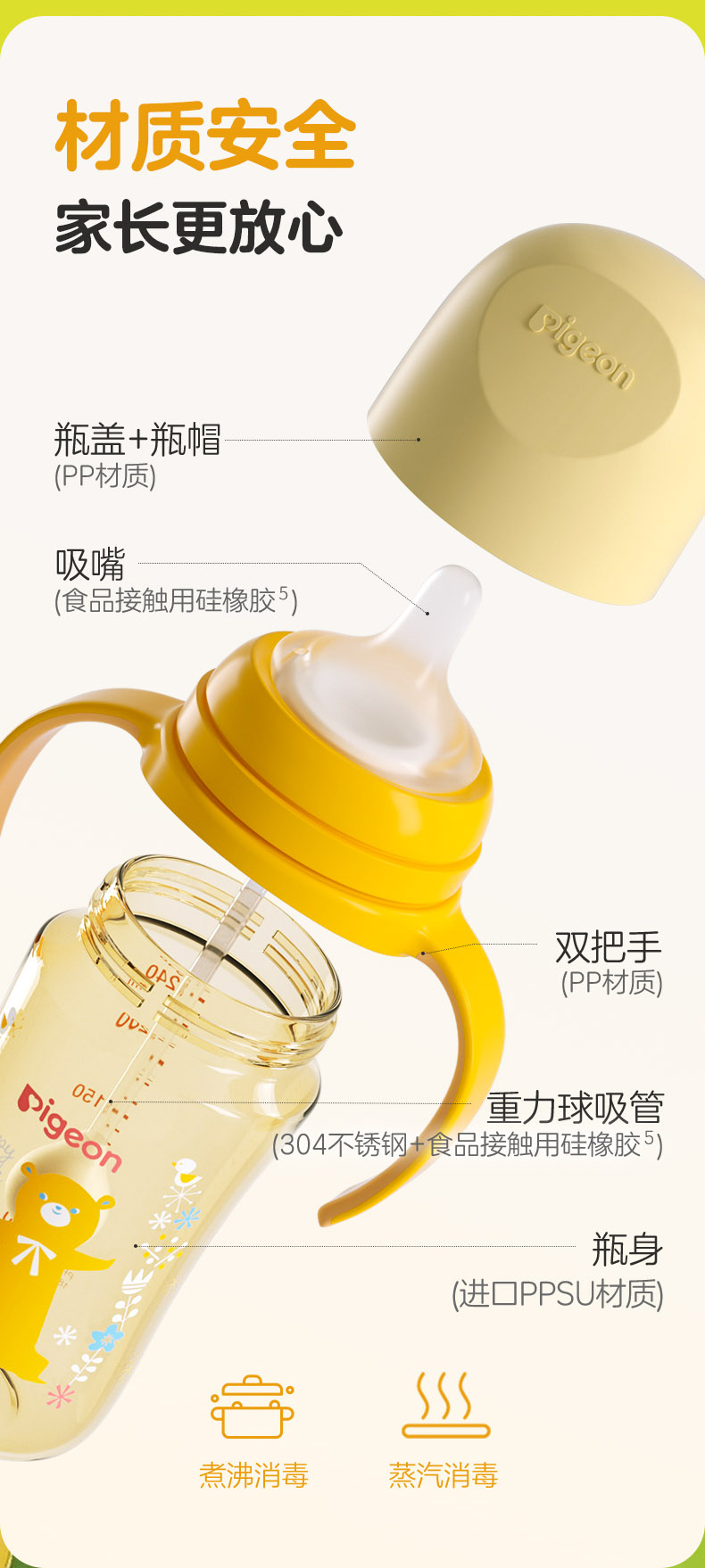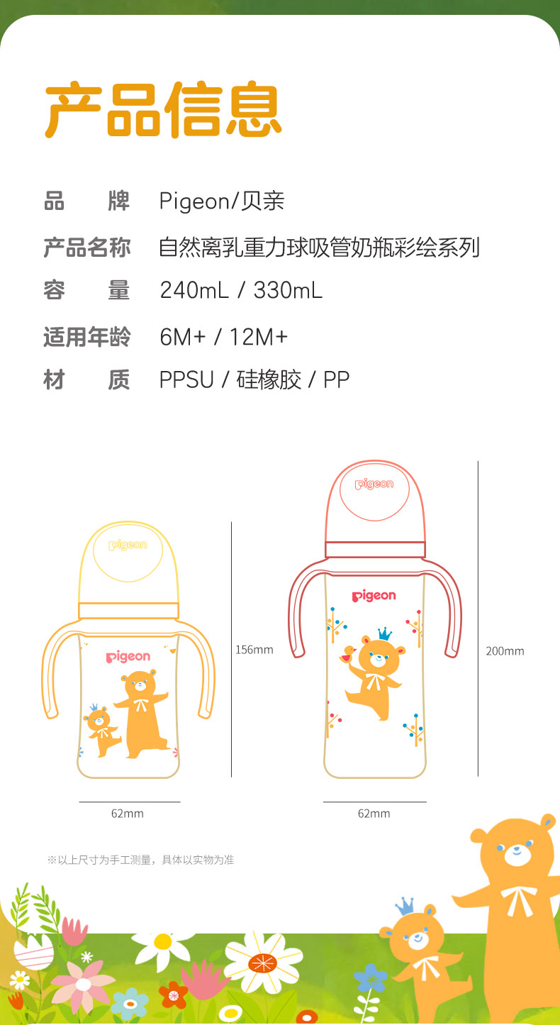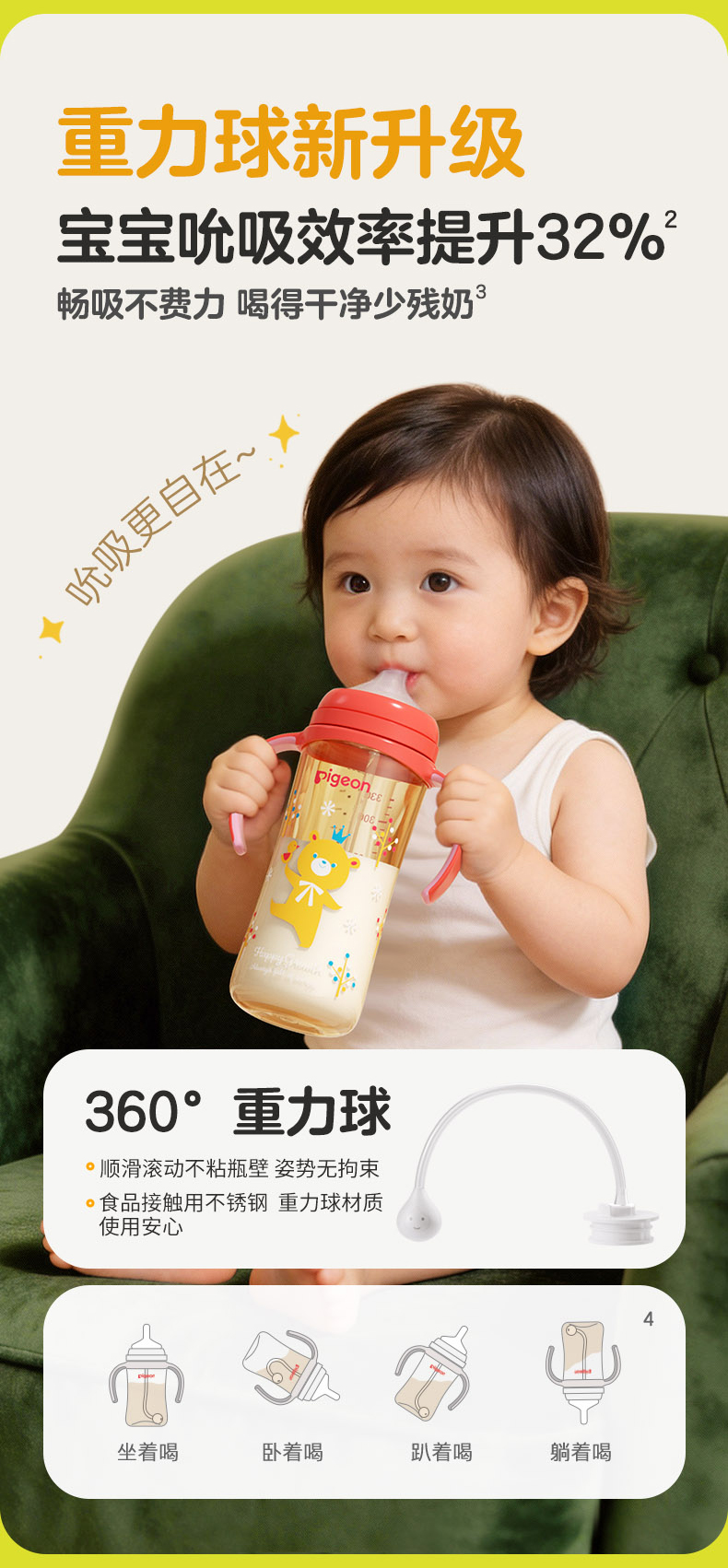 【官方自营】PIGEON/贝亲自然离乳重力球吸管PPSU防胀气防呛防胀气防呛奶瓶
