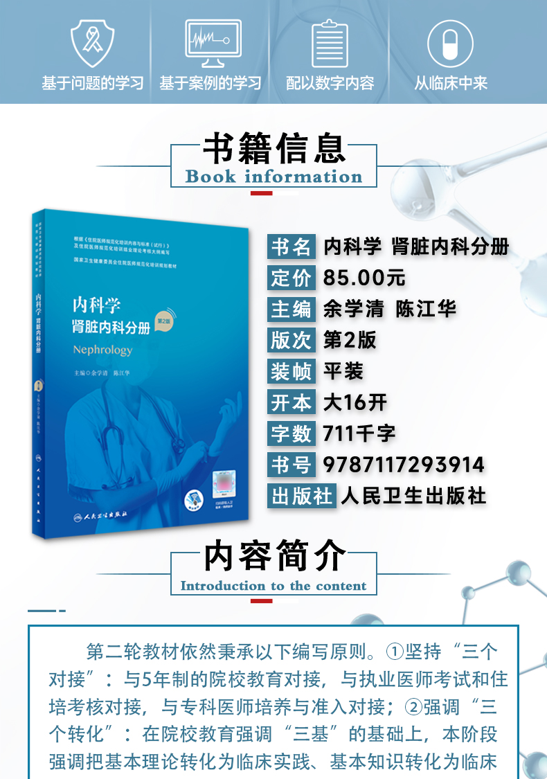 书名:内科学 肾脏内科分册(第2版/配增值)(国家卫生健康委员会住院医师规范化培训规划教材)
