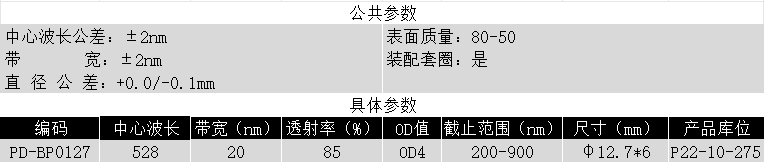 BP528/20K OD4@200-900 T>85% Φ12.7*6 带通滤光片 (带套圈)