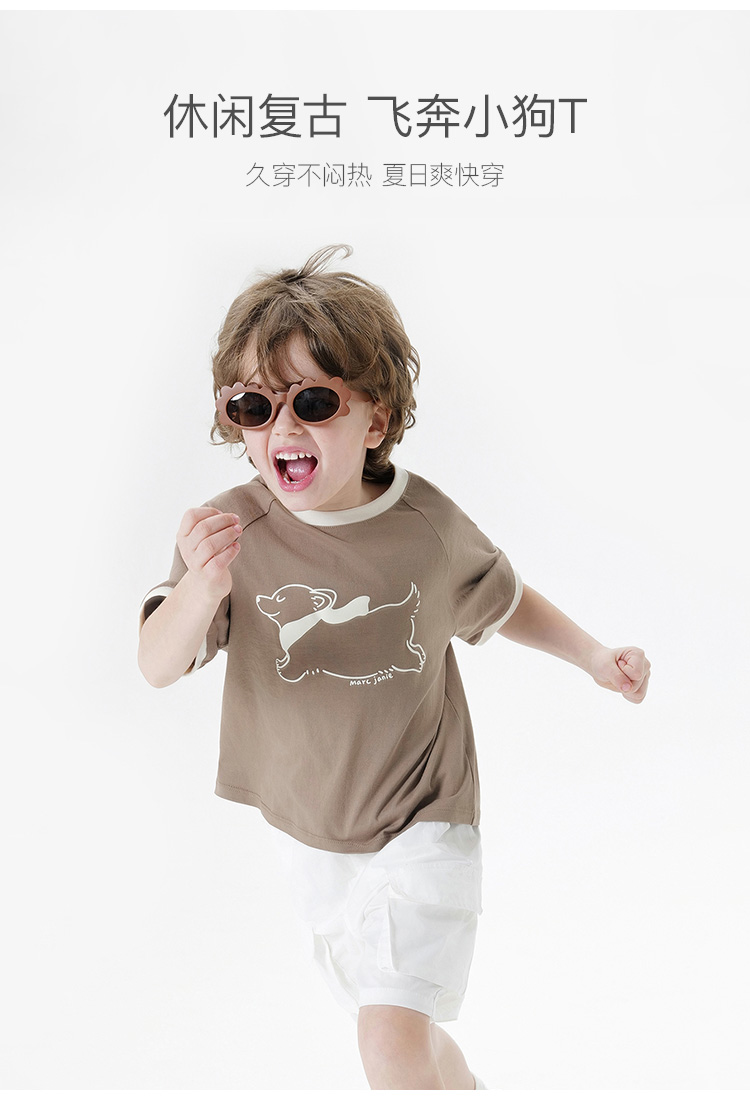 马克珍妮男童飞奔小狗休闲短袖T恤 宝宝上衣2025年夏装新款550810