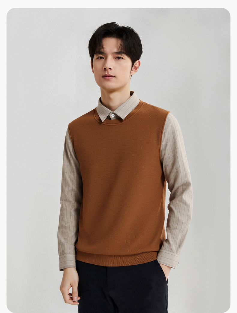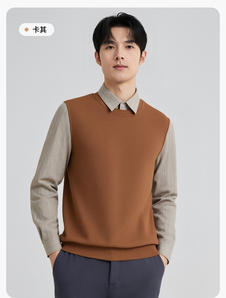 【含绵羊毛】圣得西男士亲肤柔软羊毛混纺高密针织衫2025秋季新款百搭舒适毛衣