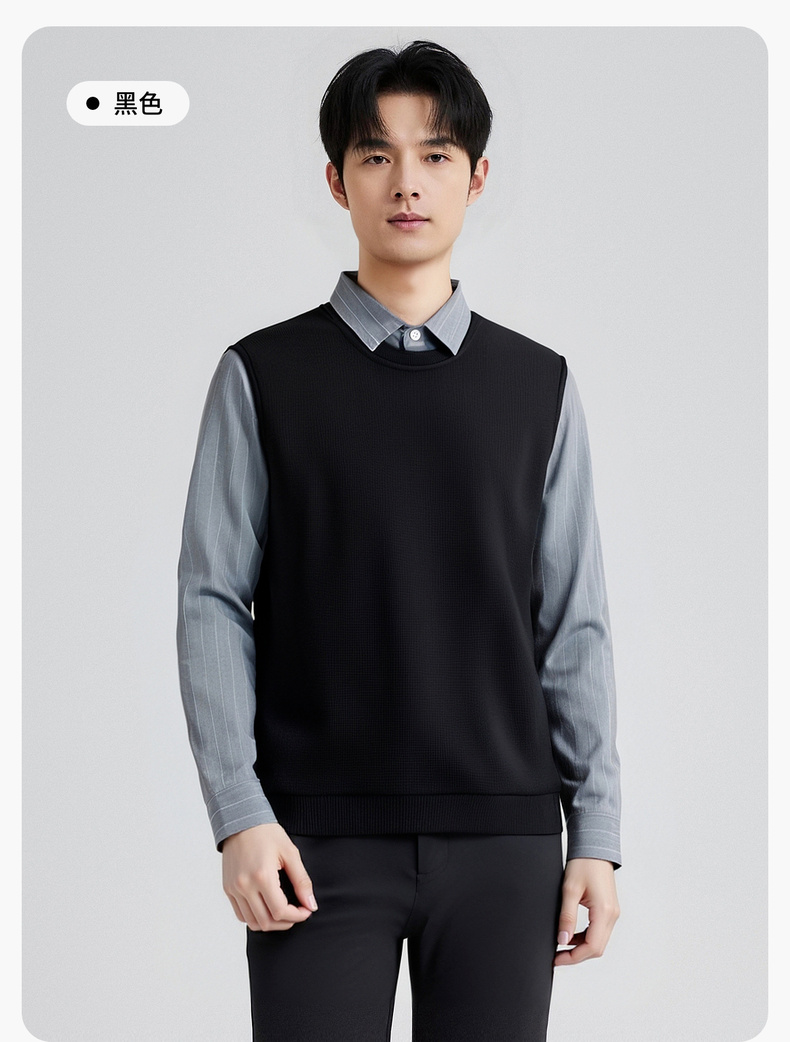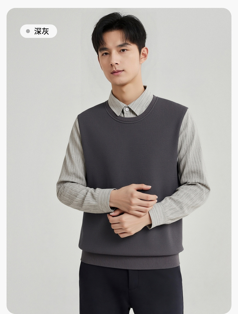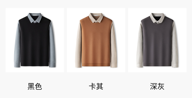 【含绵羊毛】圣得西加绒加厚羊毛衫2025秋保暖舒适拼接假两件毛衫