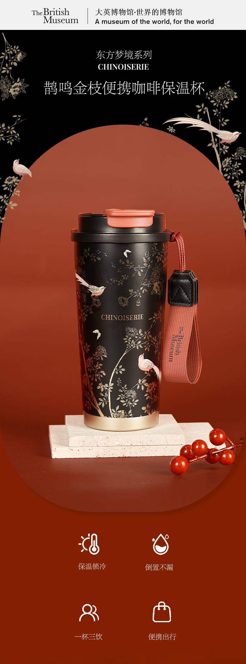 大英博物馆东方梦境灵羽芳地便携咖啡保温杯高颜值冬天送女朋友新年礼物