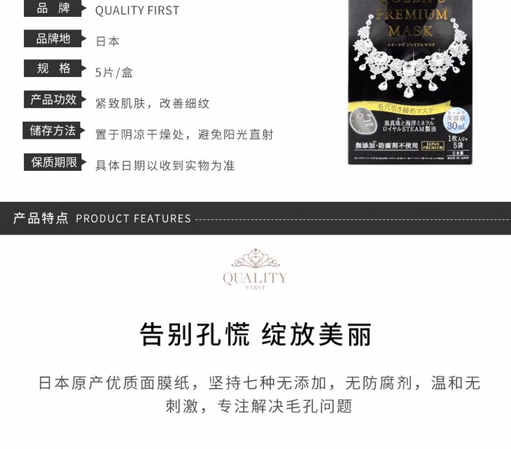 QUALITY FIRST 钻石女王系列紧致毛孔面膜 5片 直邮JPY带授权招加盟代理