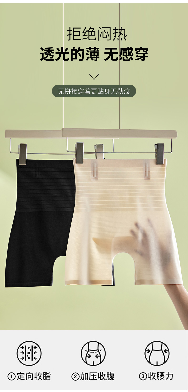 【清仓/剩黑色M/L】防卷边无痕收腹裤 轻薄收腹蚕丝安全裤5Z24QNH1783
