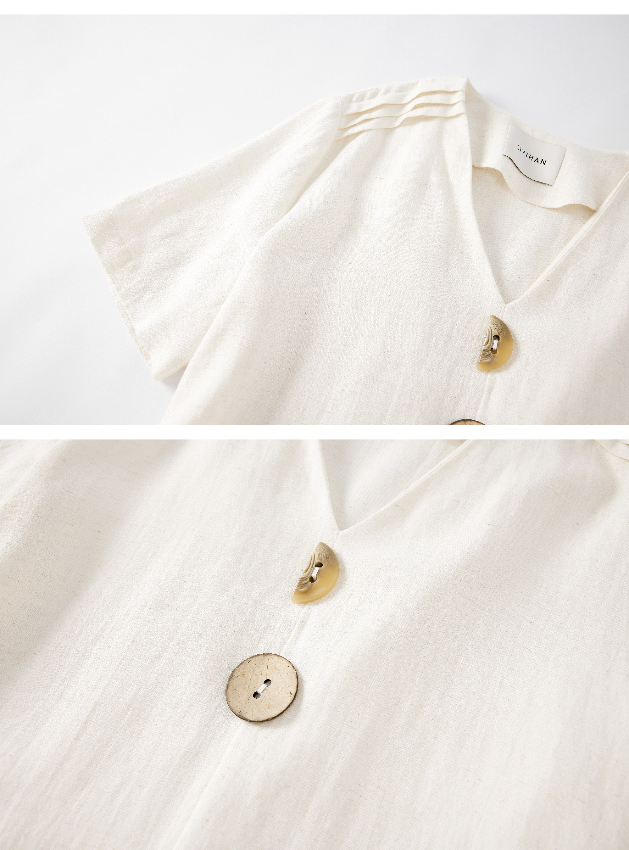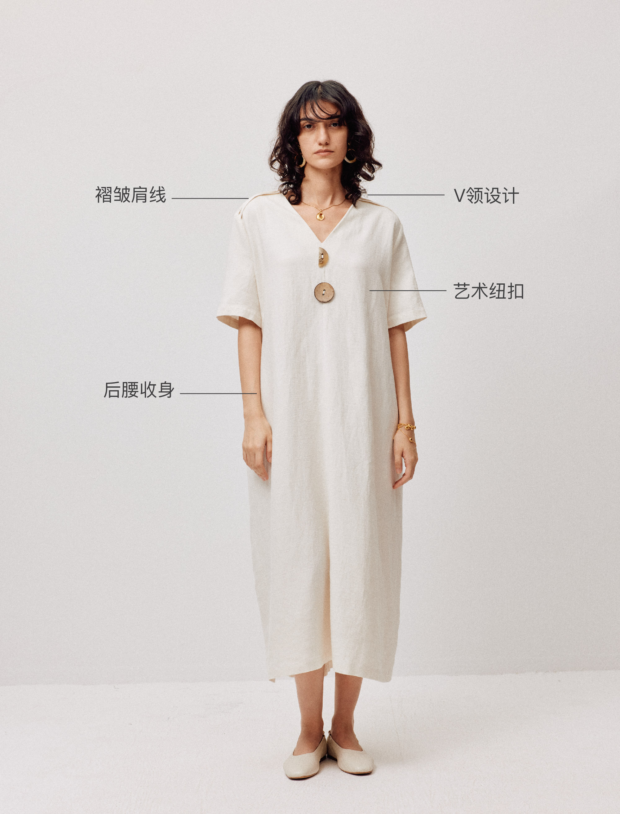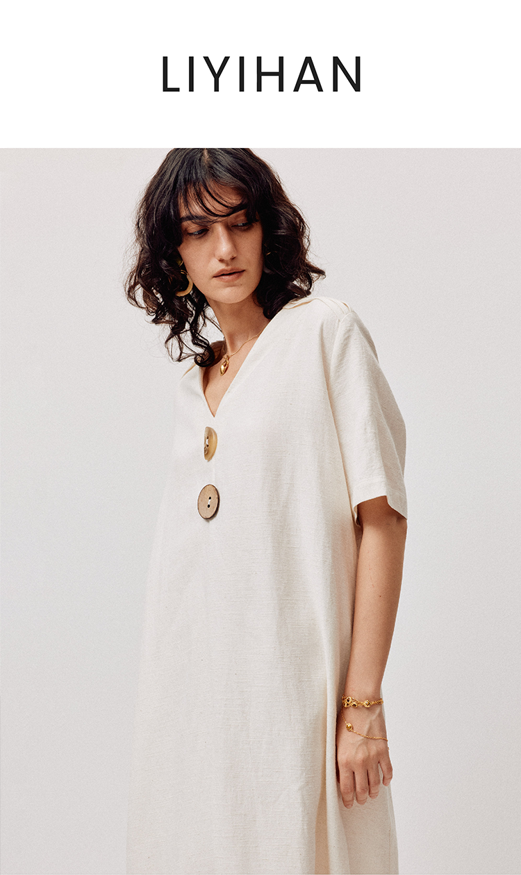 LIYIHAN亘云麻 | 25夏亚麻V领廓形连衣裙A摆裙子气质度假风时尚感