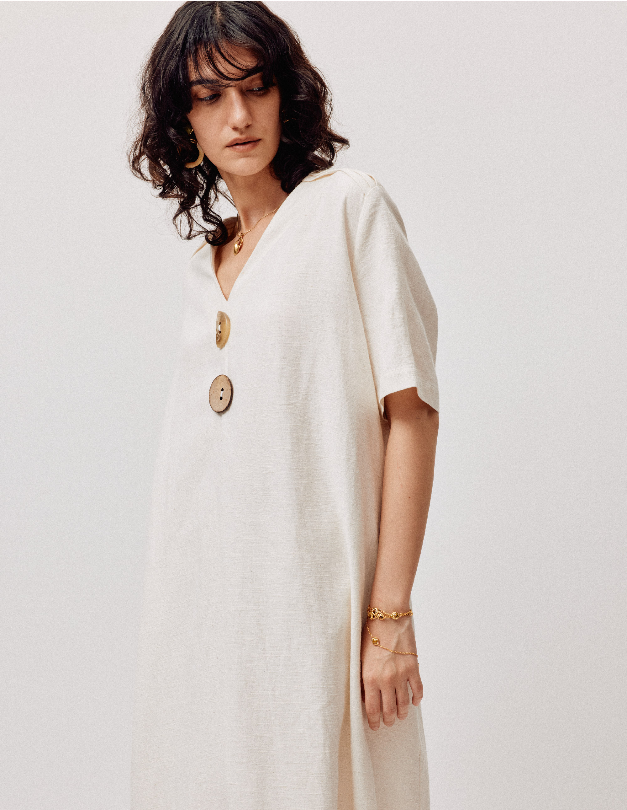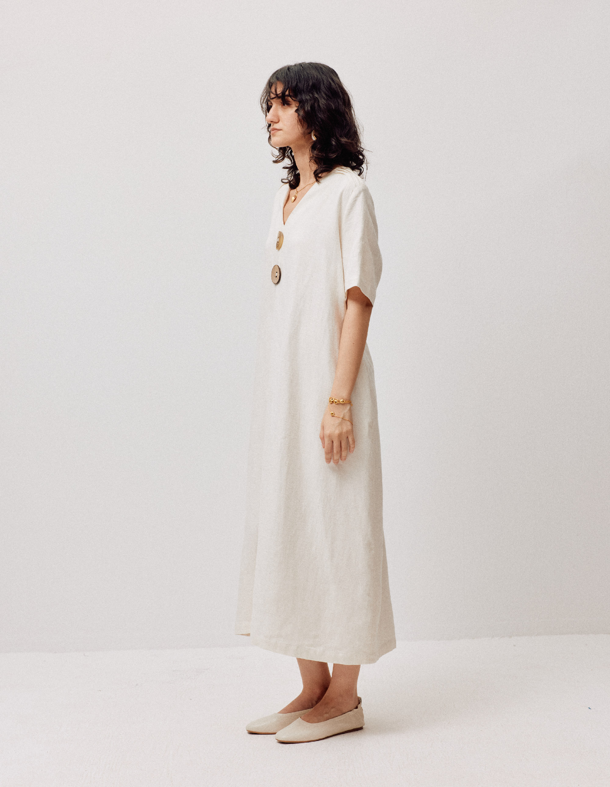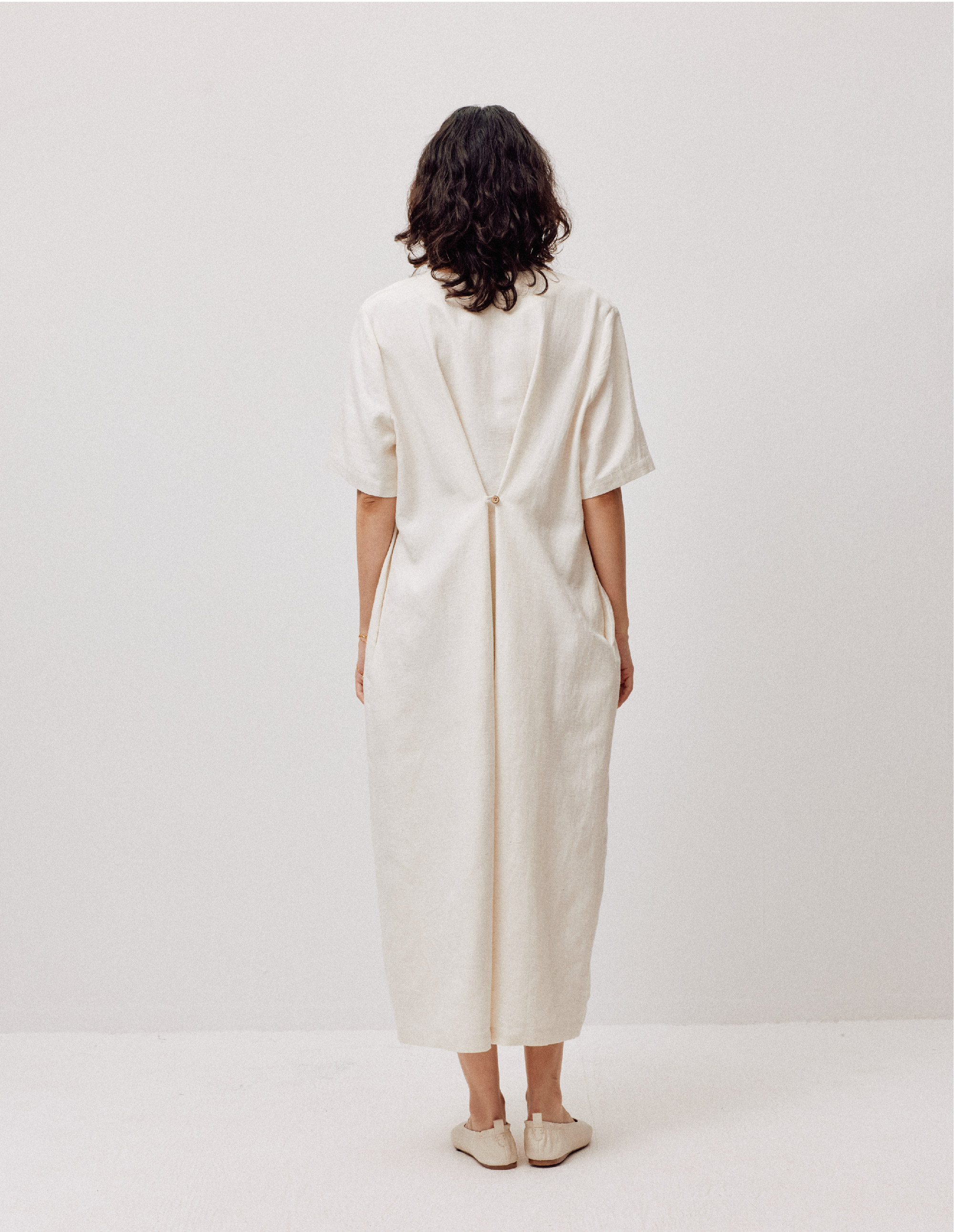 LIYIHAN亘云麻 | 25夏亚麻V领廓形连衣裙A摆裙子气质度假风时尚感