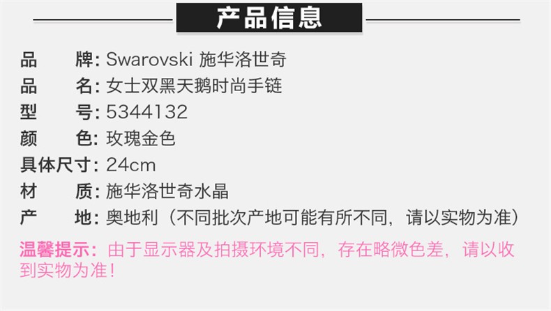 【香港直邮】SWAROVSKI/施华洛世奇 双黑天鹅女士镀玫瑰金色手链 5344132